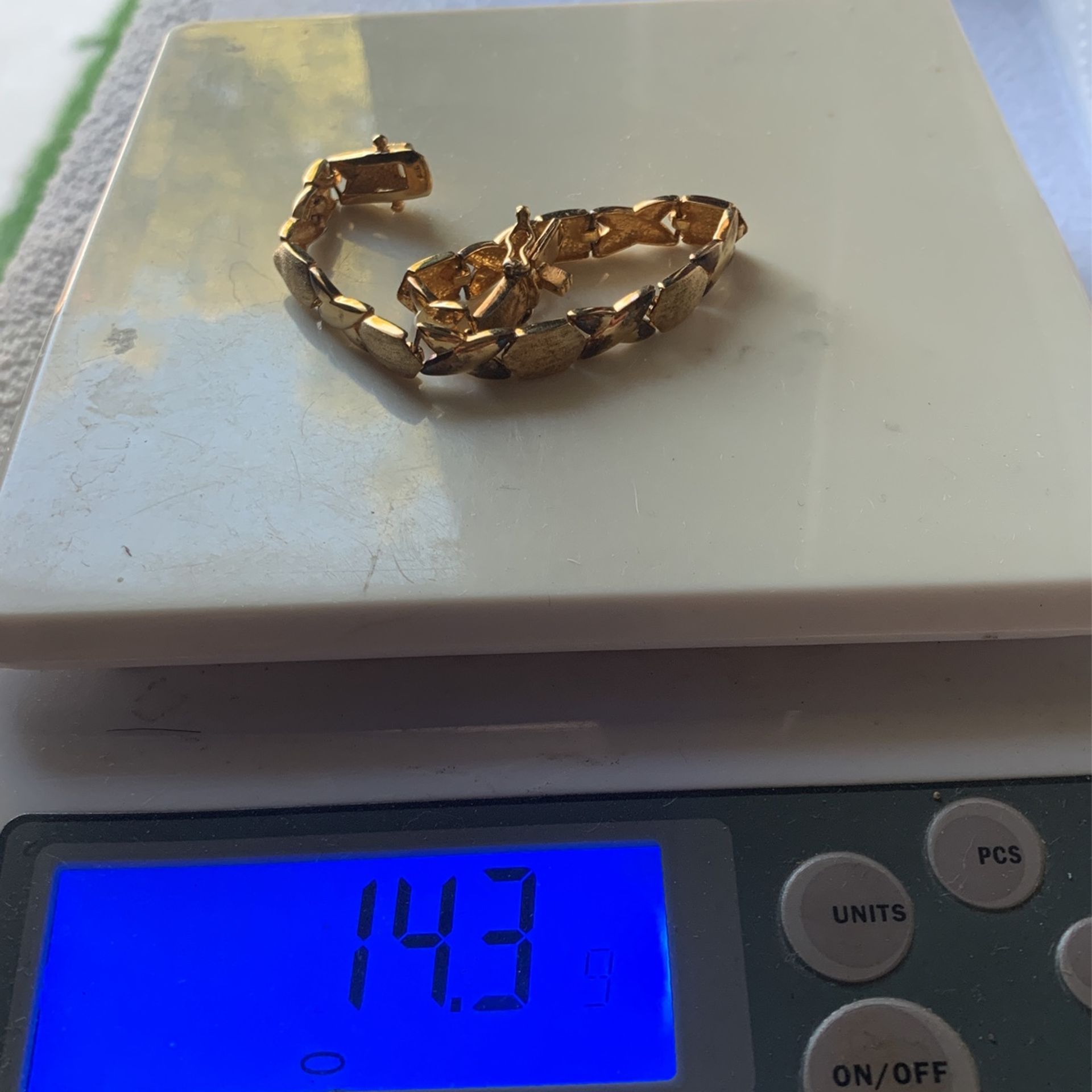 Marked 925 gold tone/ vermeil bracelet. This is not a real gold. It is a sterling silver. Look photos for more details