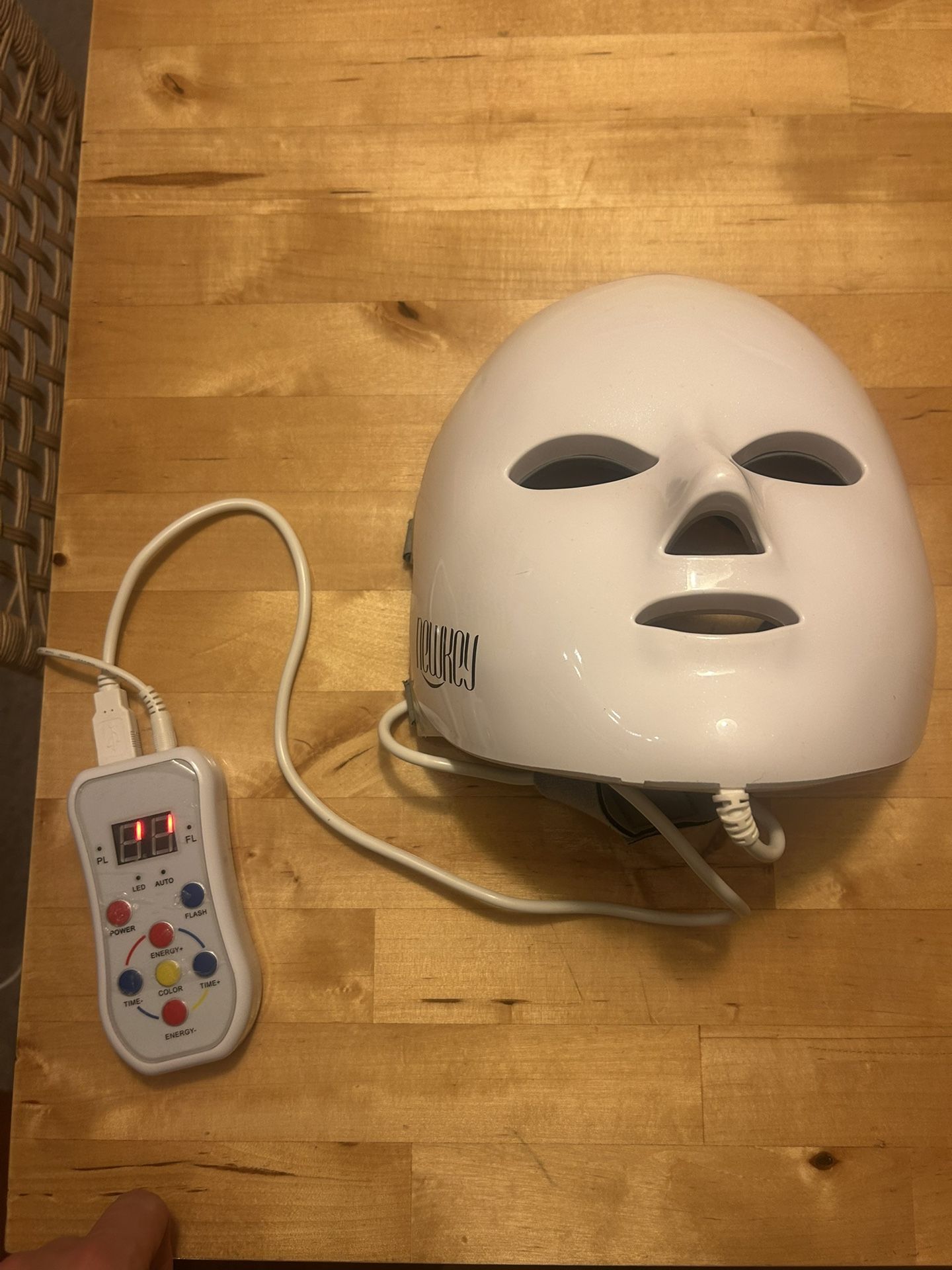 Face LED mask from New Key. Perfect working condition. Sells for 150$ on Amazon: https://offerup.com/redirect/?o=aHR0cHM6Ly9hLmNvL2QvMjlWT3dyNA==
