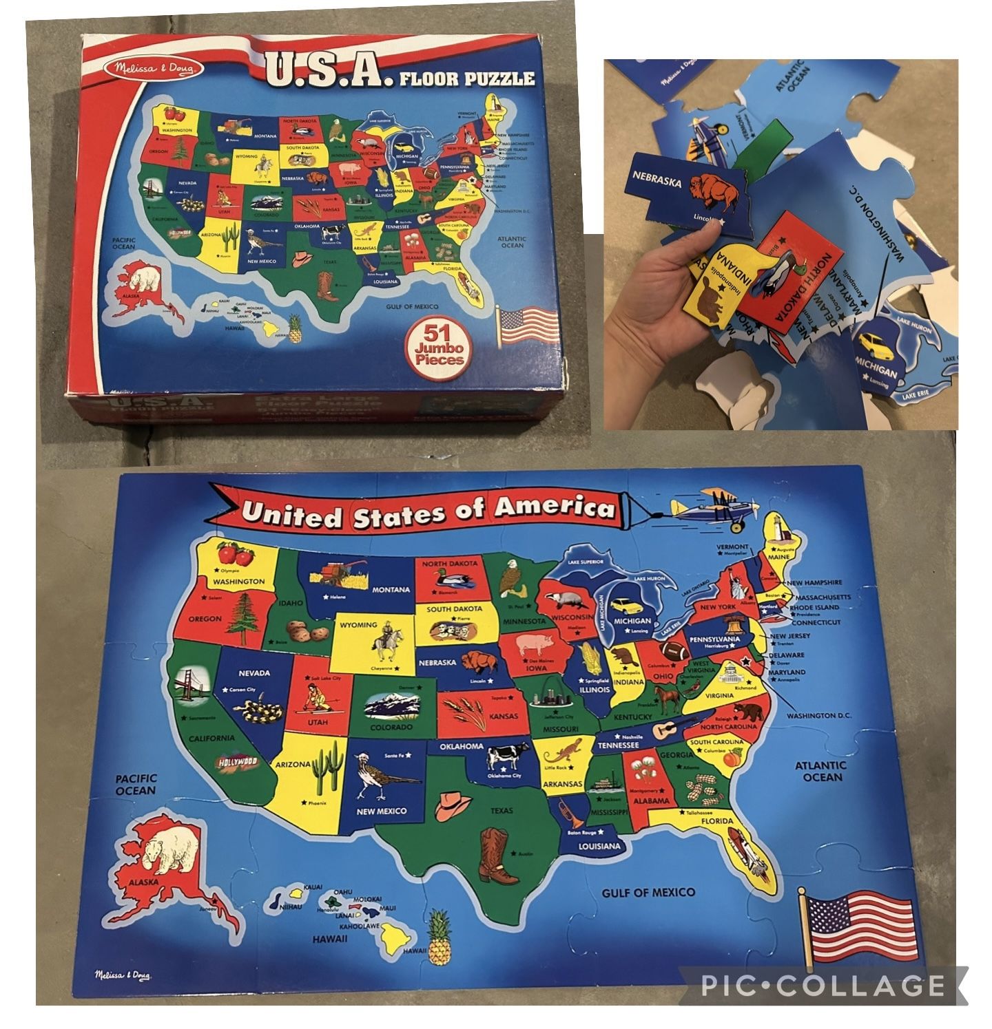 Melissa & Doug USA Floor Puzzle: 51 jumbo pieces, United States map