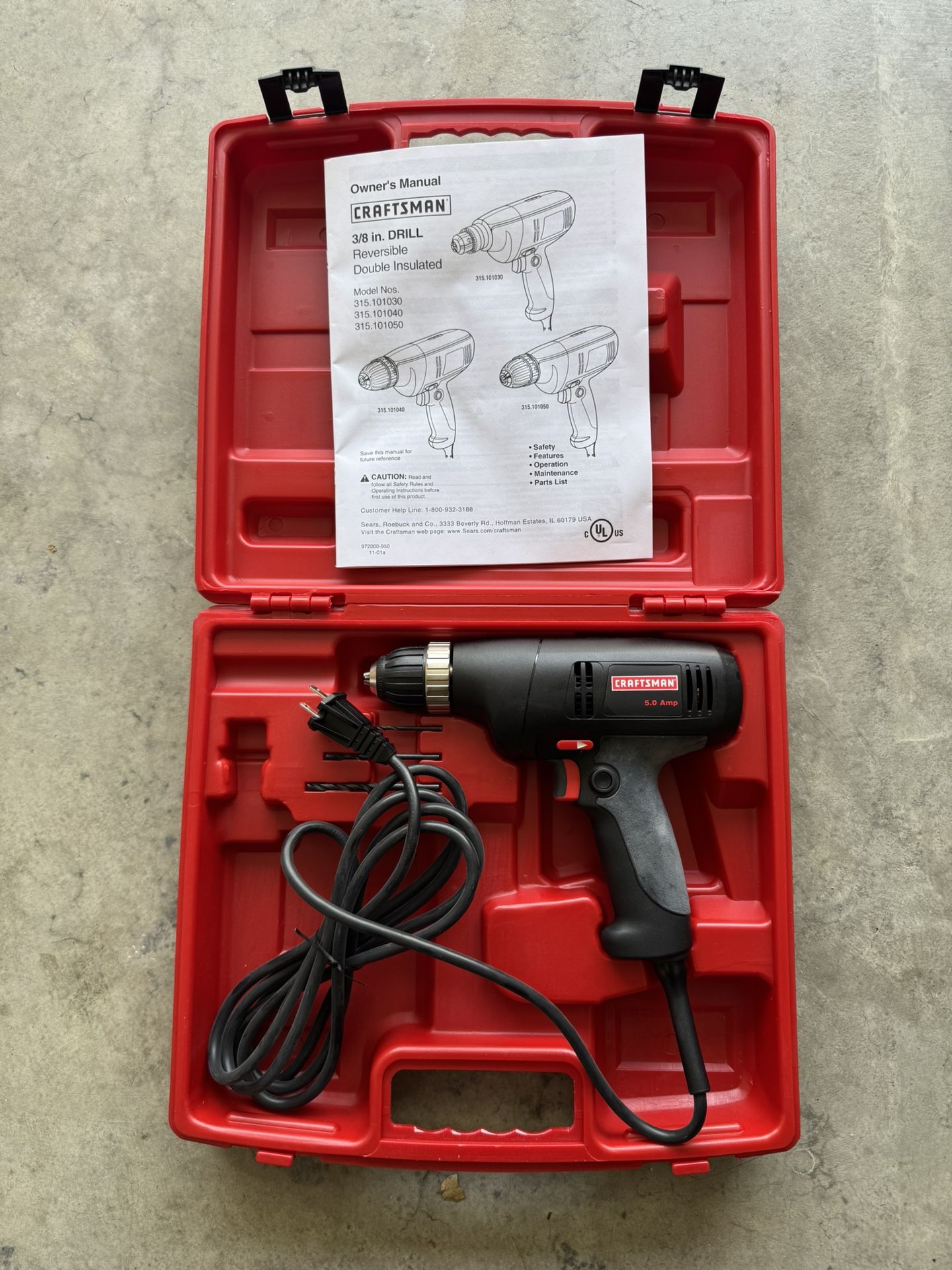 Brand new corded Craftsman 3/8” drill. Never used. Located in Castaic (Santa Clarita Valley)