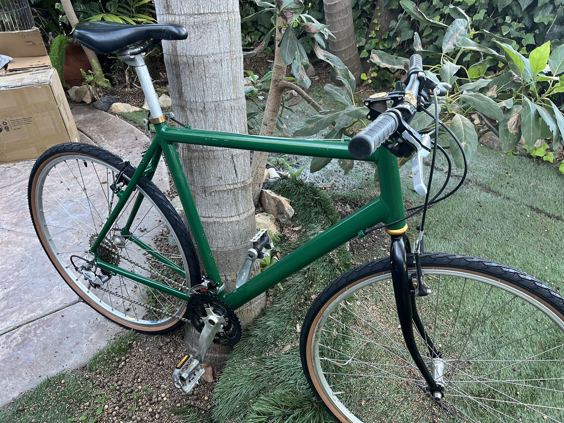 Fuji high Quality hybrid road bike: XL I aluminum frame with chromoly forks. Avid V brakes, Shimano LX rear derailleur and ne Tourney front derailleur, new sealed bearing anodized headset, new stem, Bontrager handlebars, new chain, new cables, new grips, new micrishift shifters, alloy 3 chainring crankset. 8 speed Shimano cassette, alloy wheels with Shimano hubs. New 700 x 35 gum wall tires and tubes, Powder coated paint job. Bike rides and looks like new. Should fit someone in the 6’2” height range.