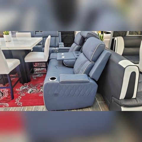 2026 New Power recliner sofa set with LED USB and Wireless chargers