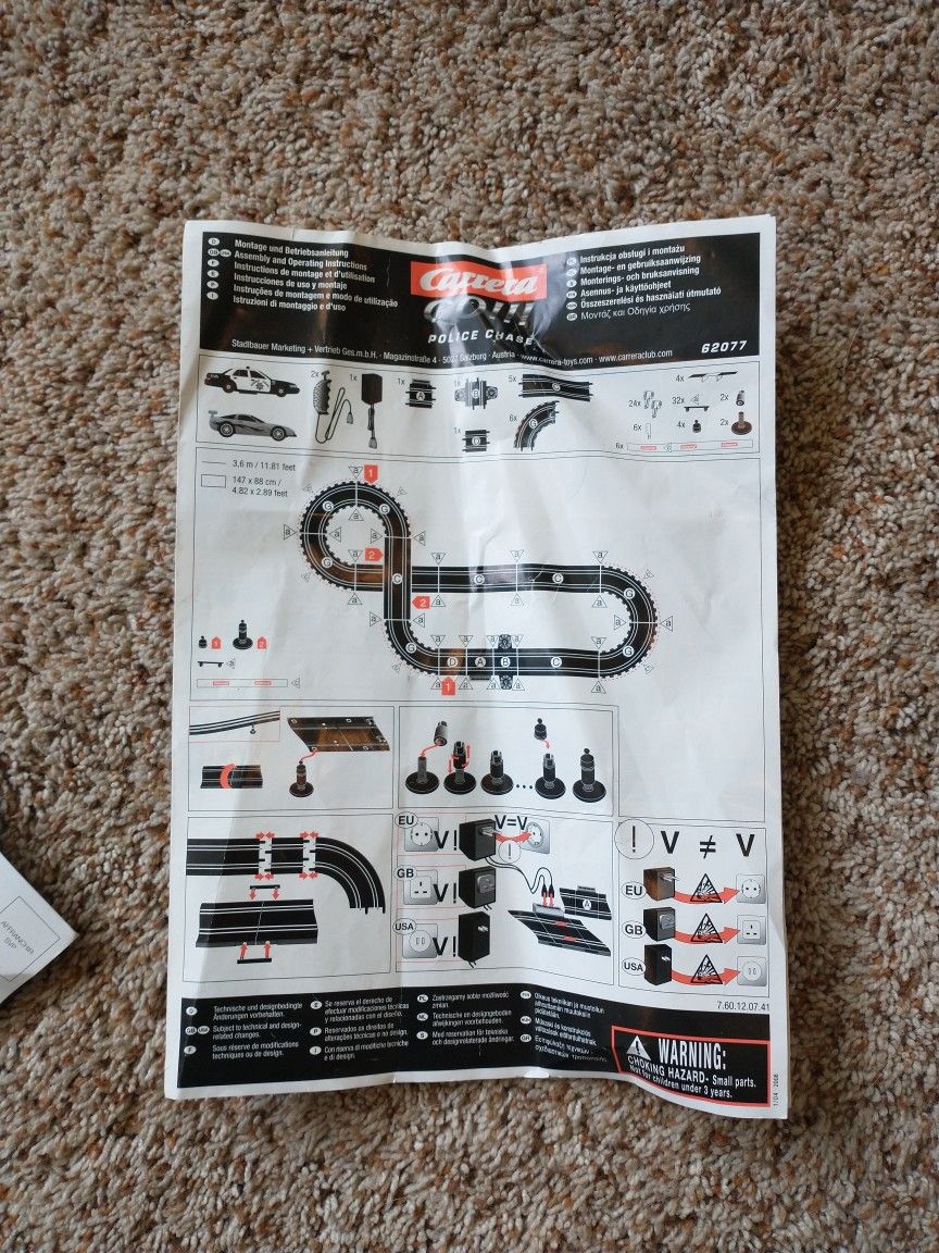 Carrera Go Place Chase Electrical Track Car Race Kit Two cars police and Carrera Track and remote two control joy sticks Hasn't been used in years and yours for $25 If interested we can set it up and run it to be sure working