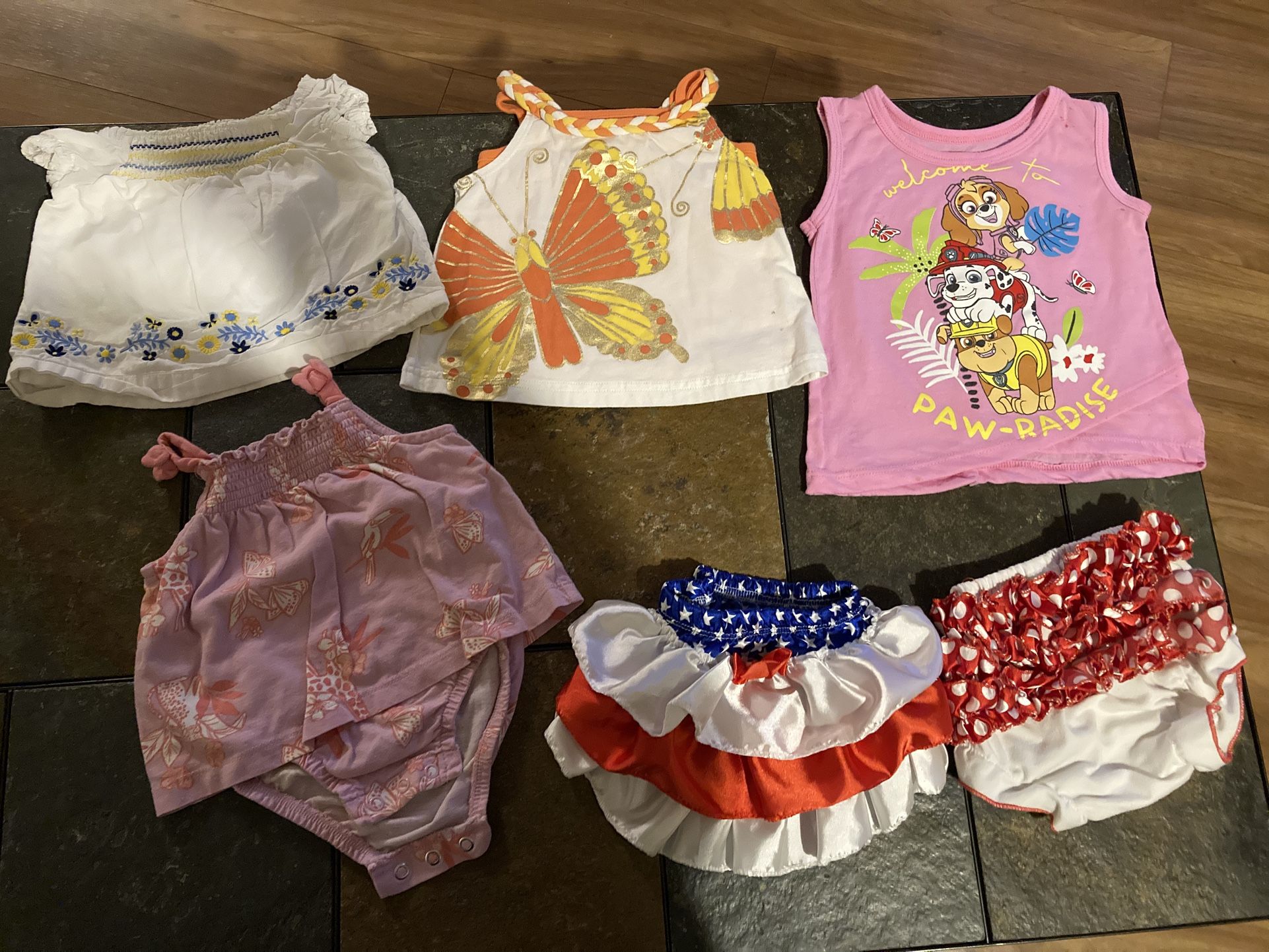 Baby Girl summer items 2 tops are 12 months, 1 top 6-9 months 2 shorts size small 1 pink outfit 3 months Asking $2 each piece Thanks, see my other ads. Lots of baby and kids items