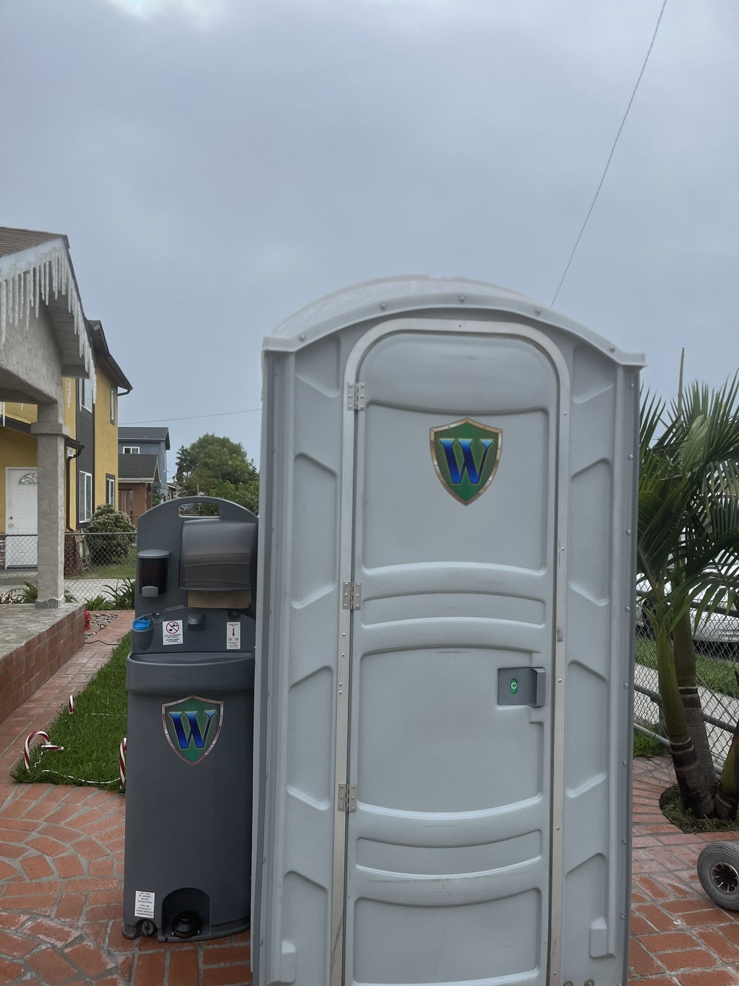 Portable toilet includes: - Two rolls of toilet paper - Light - Blue deodorizer inside toilet Sink stations include: -One pack of paper towels -Liquid soap -Water inside container
