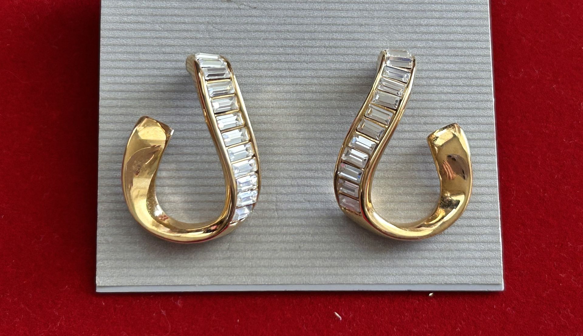Swarovski Swan Signed Baguette Crystal Hoop Earrings.