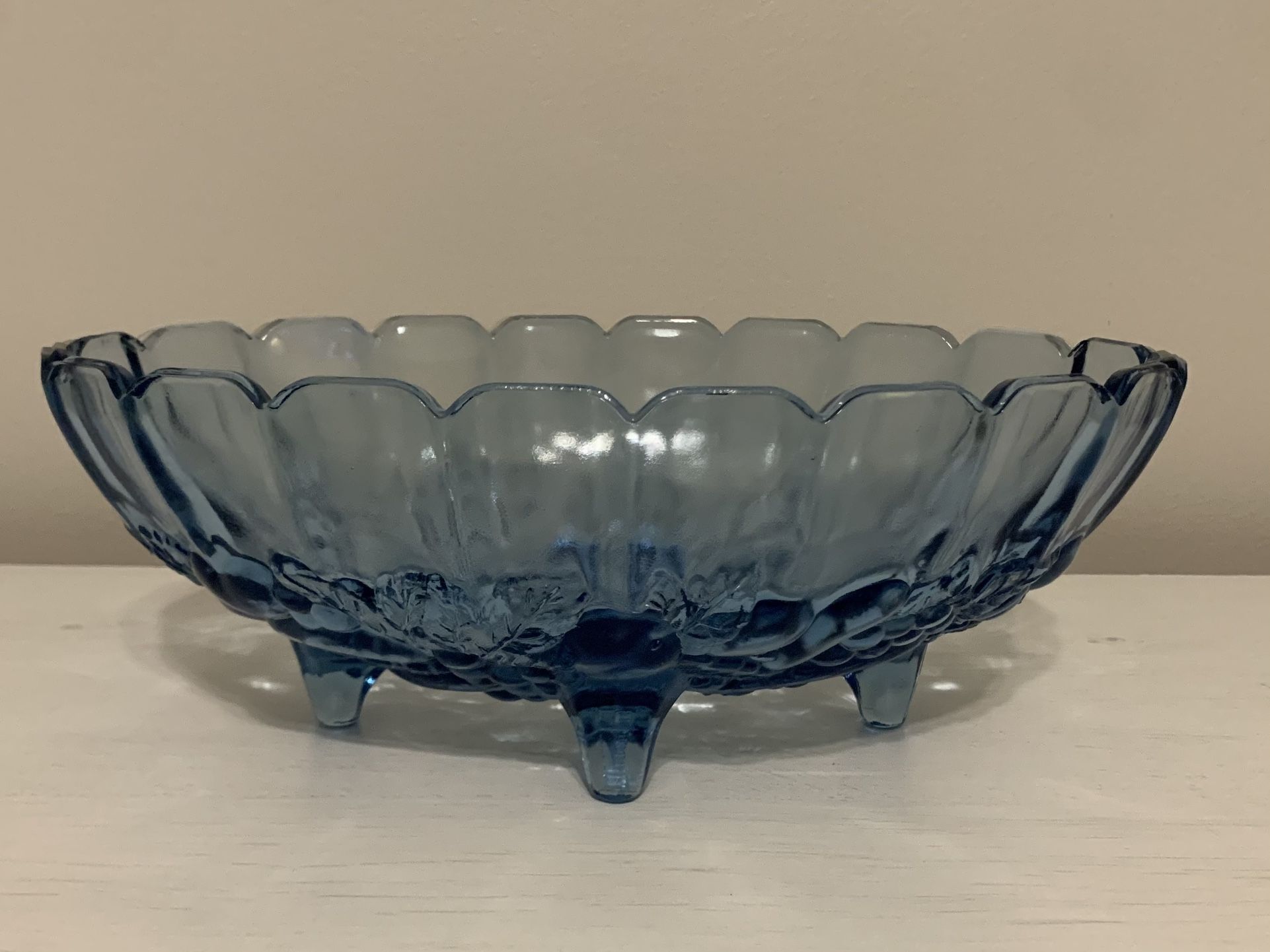 Vintage Indiana Glass Garland Blue Footed Harvest Fruit Centerpiece Bowl Large