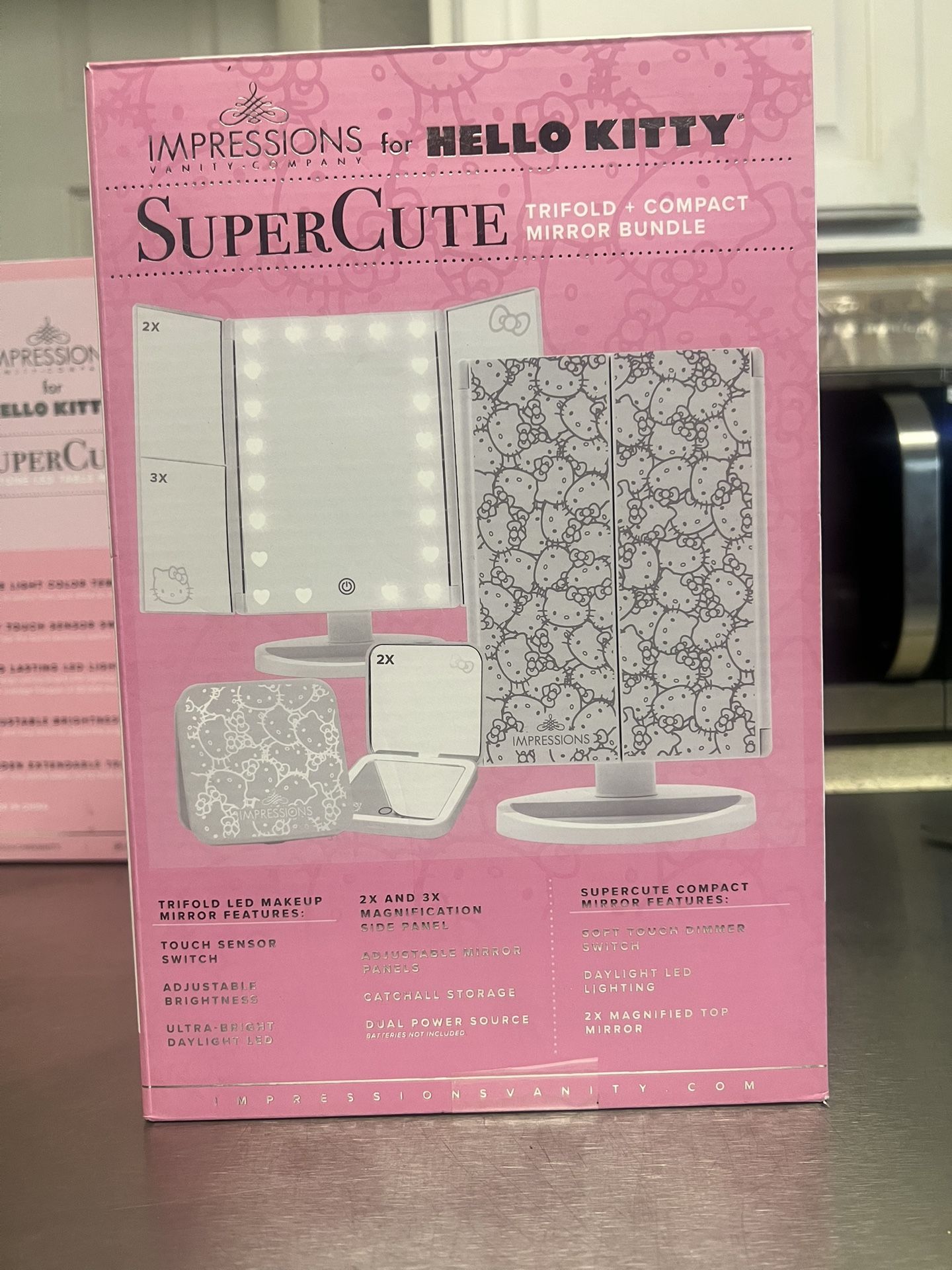 Hello! Currently selling this BRAND new Hello Kitty trifold mirror. It comes with both the mirror and small compact mirror in its original packaging. Extra details in photos. Im asking $80 obo! Serious inquiries only. Thank you!! ๐