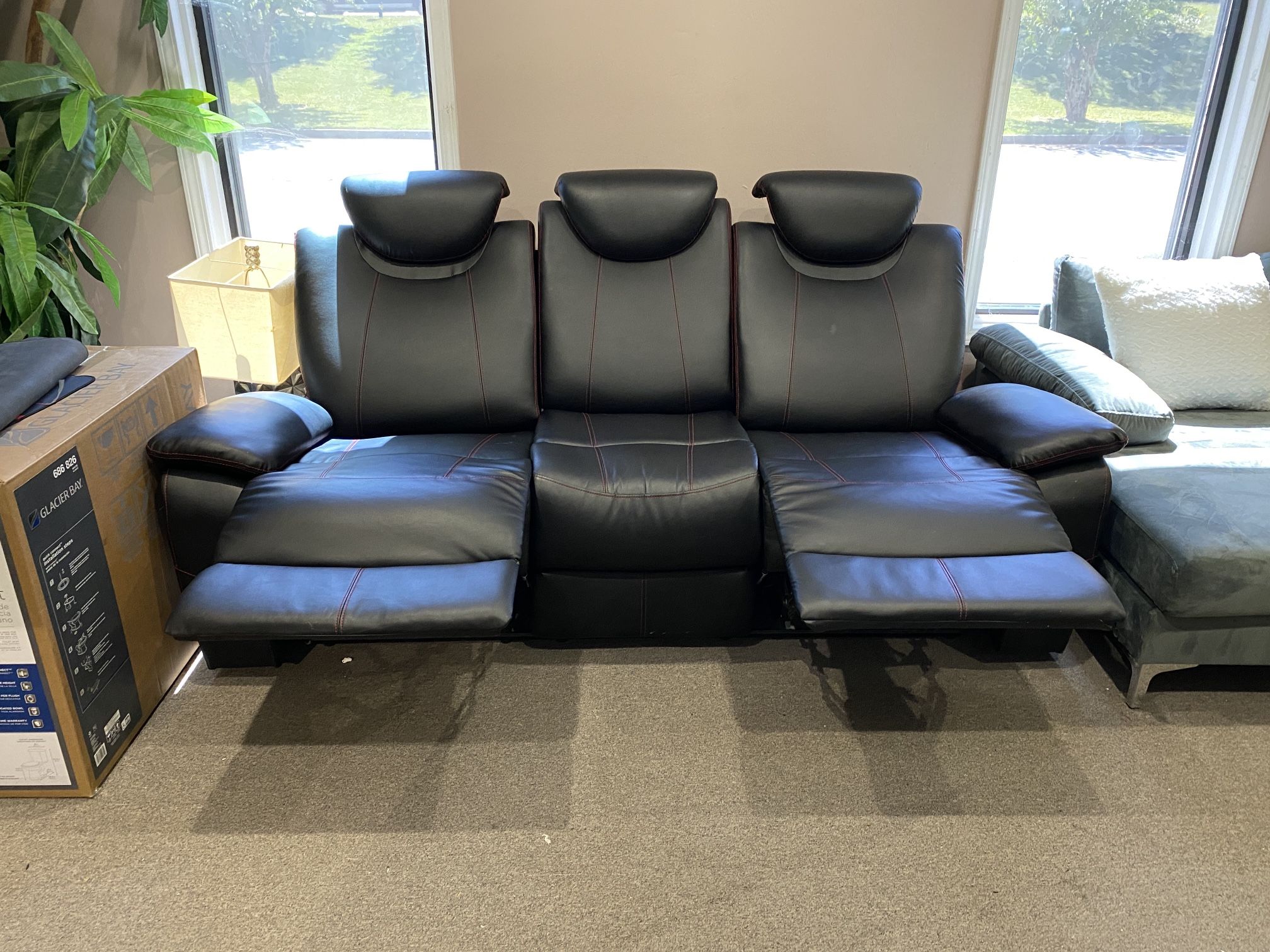 Dual reclining leather sofa with adjustable headrest very comfortable $199 great for man cave or game room or den Atlantabargainoutlet 635 Red Oak Rd., Stockbridge, GA financing available delivery available