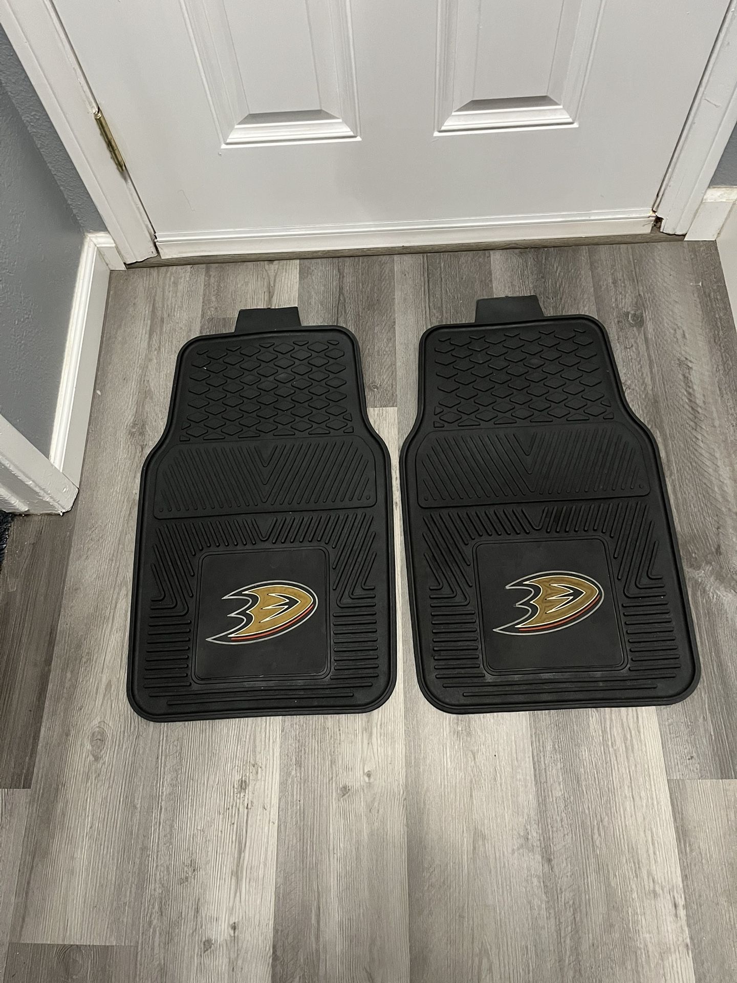 FANMATS NHL Anaheim Ducks 2pc All Weather Rubber Front Heavy Duty Floor Mats. Preowned good condition. Size approximately 26 inches long and 16 1/2 inches wide.