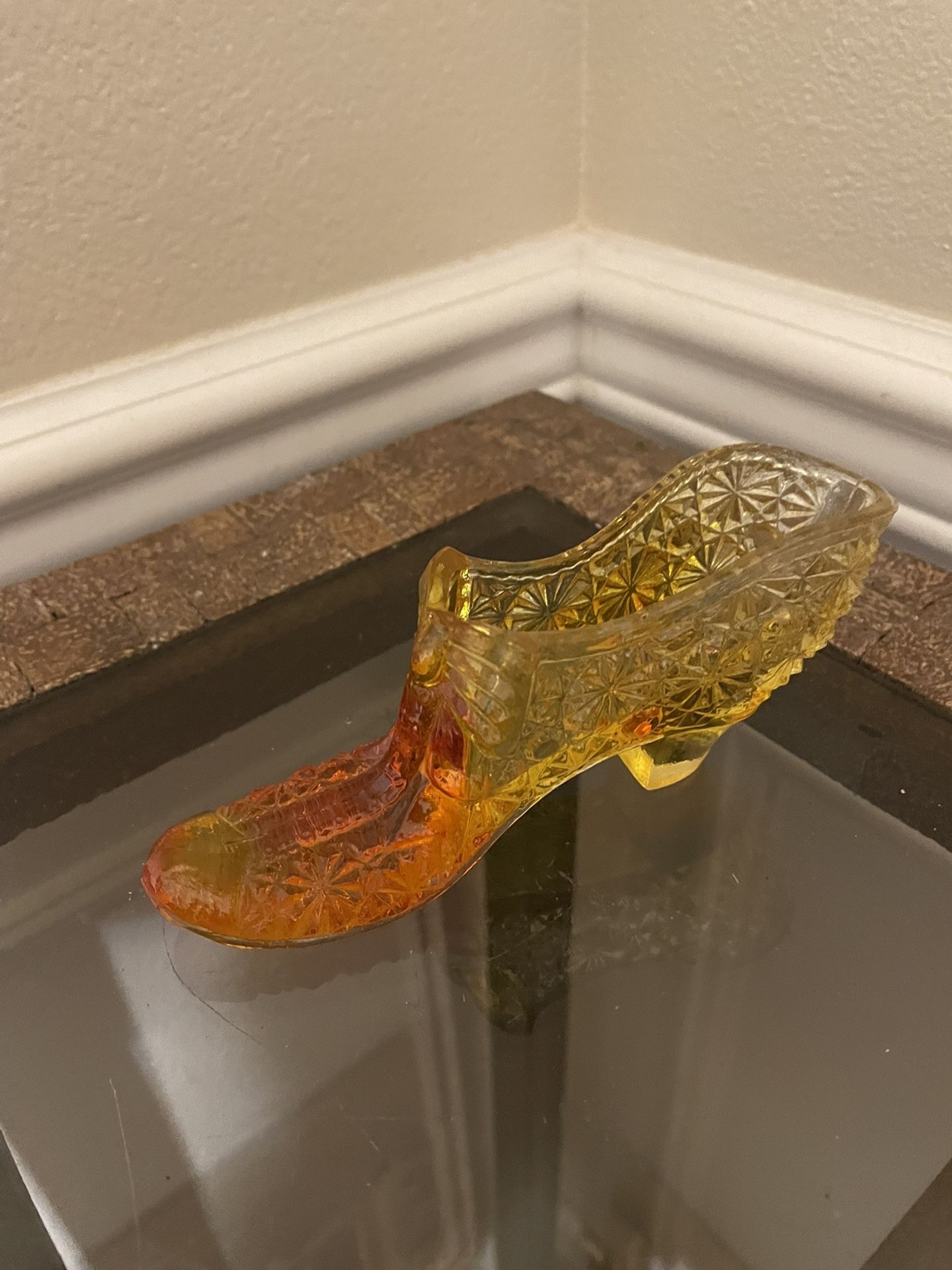 Antique Fenton Daisy & Button Red & Yellow Amberina Glass Slipper Shoe with Bow
