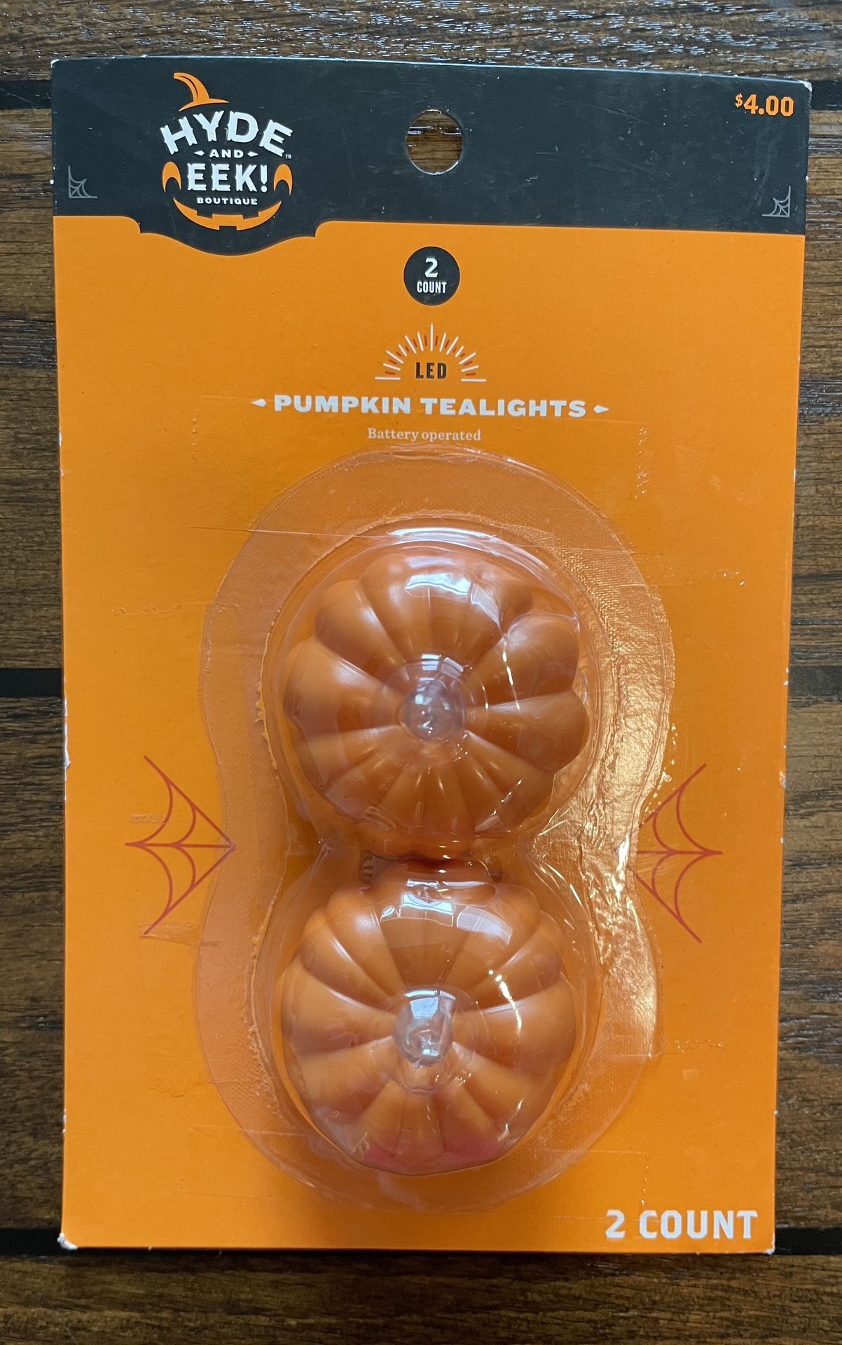 Hyde and Eek! LED Pumpkin Tealights. 2 count, battery operated, batteries not included.