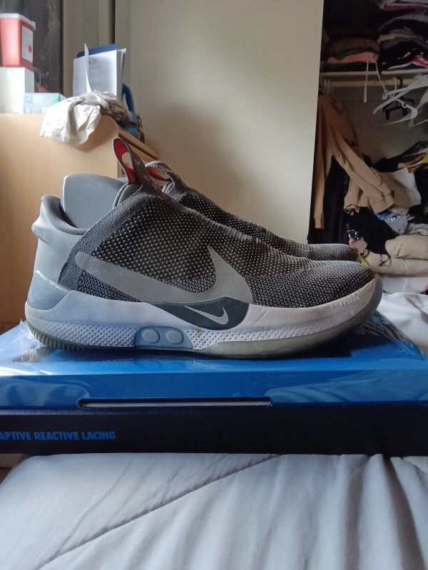 Nike adapt BB size 11 men's 12 women's very nice condition dark grey/reflect silver