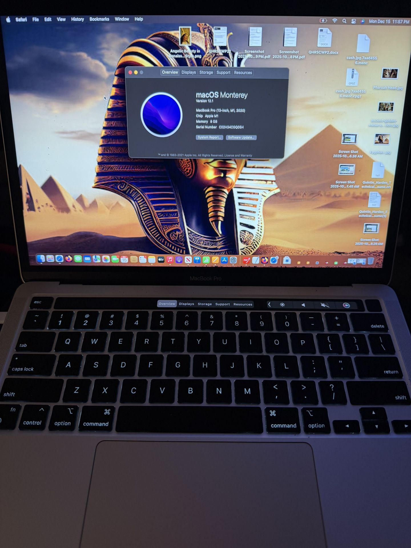 MacBook Pro macOS Monterey Version 12.1 (13-inch, M1, 2020) Chip Apple M1 Memory 8GB Serial Number C
