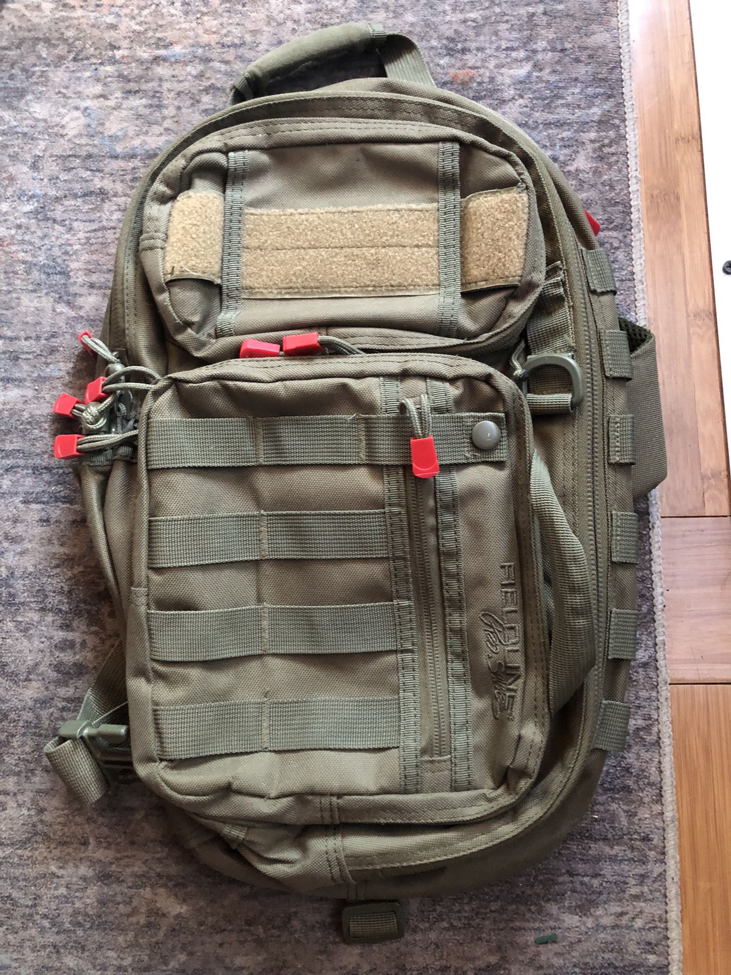 Super Rugged single strap army green backpack, in good condition - like new. Lots of pockets, good zippers.