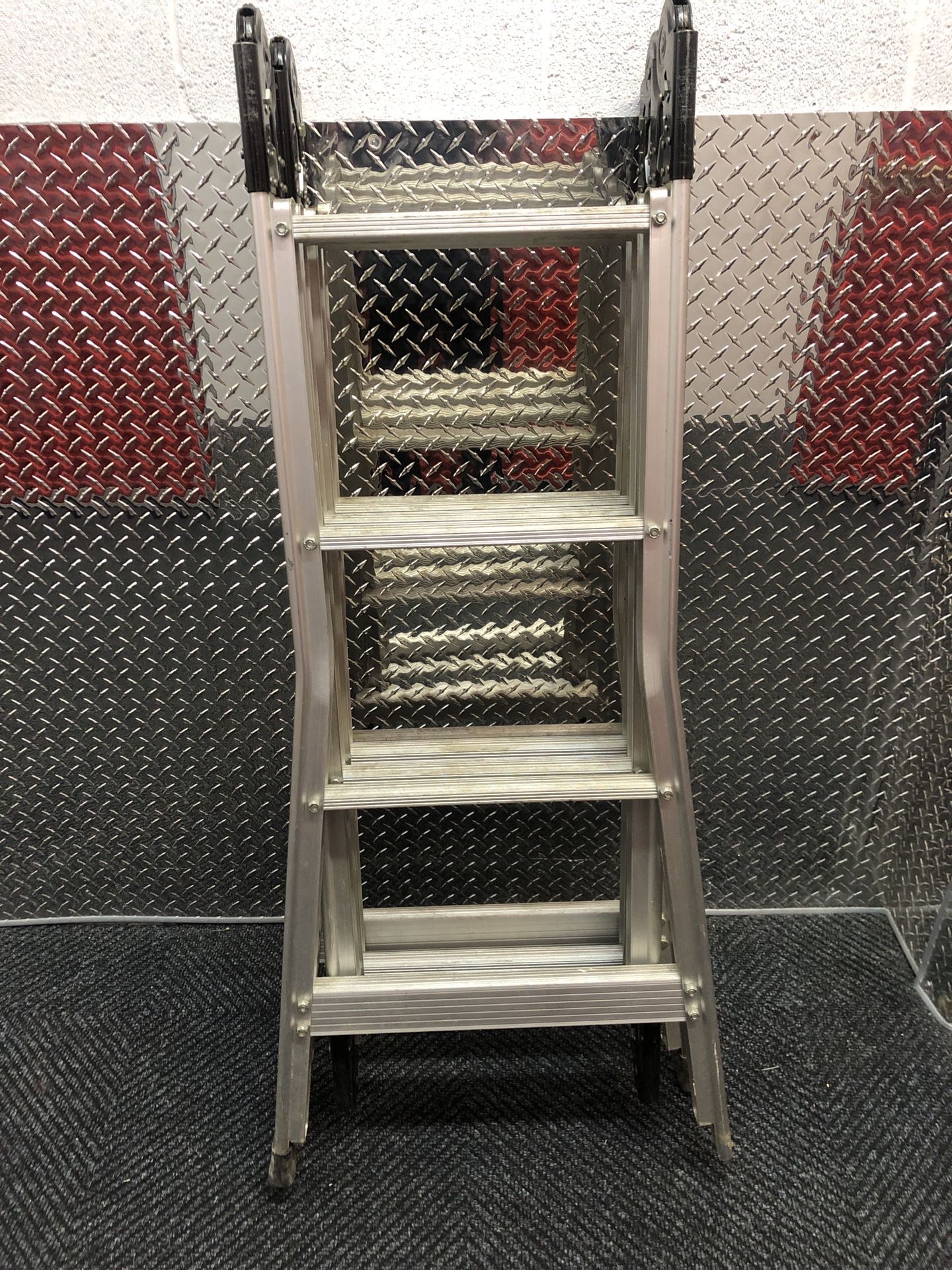 This is a lightly you 16 1/2 foot foldable ladder great for any project can fold open so many different heights