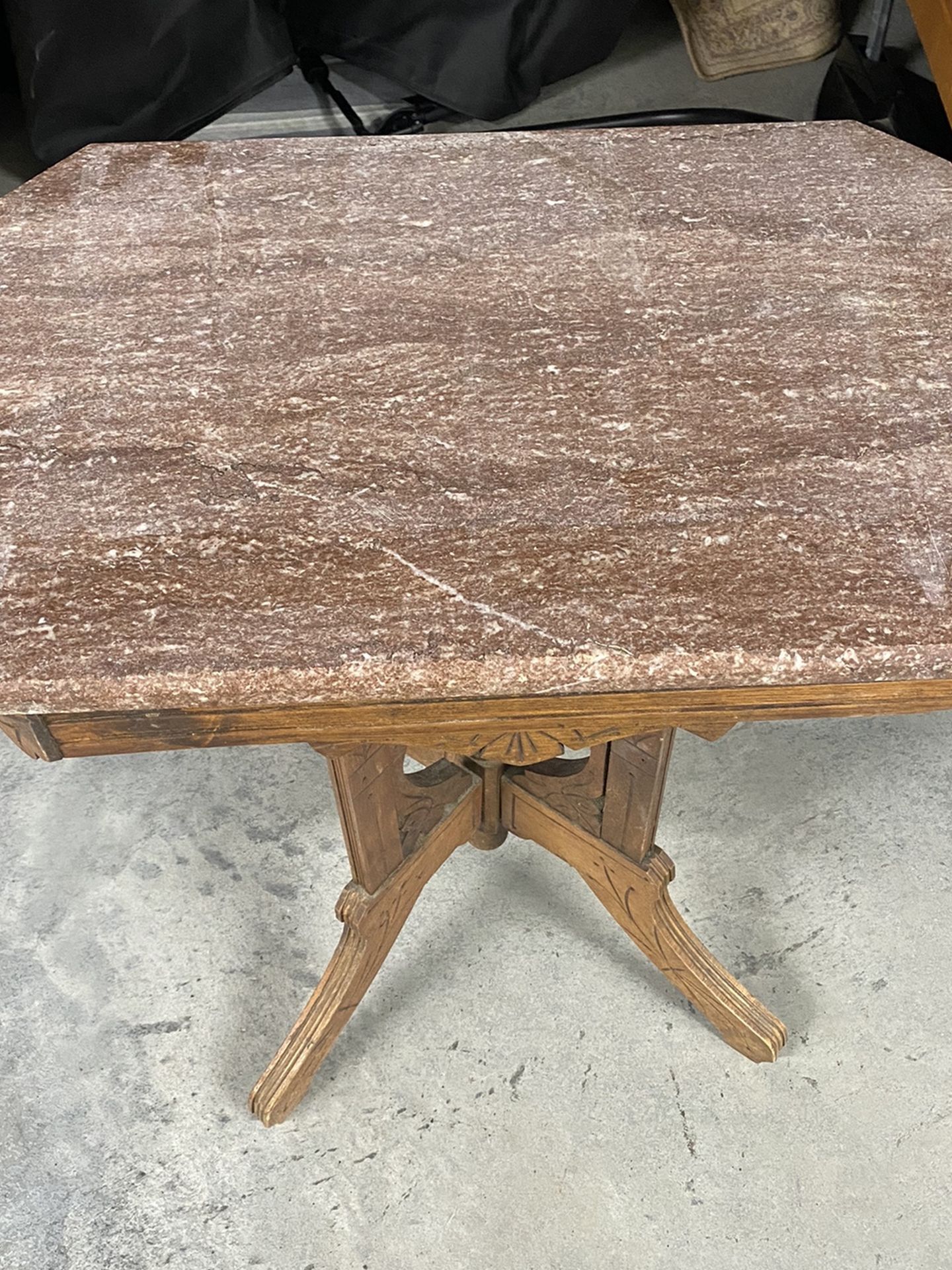 Antique pink marble wood carved table - side or end table- good condition - $135 obo very pretty piece