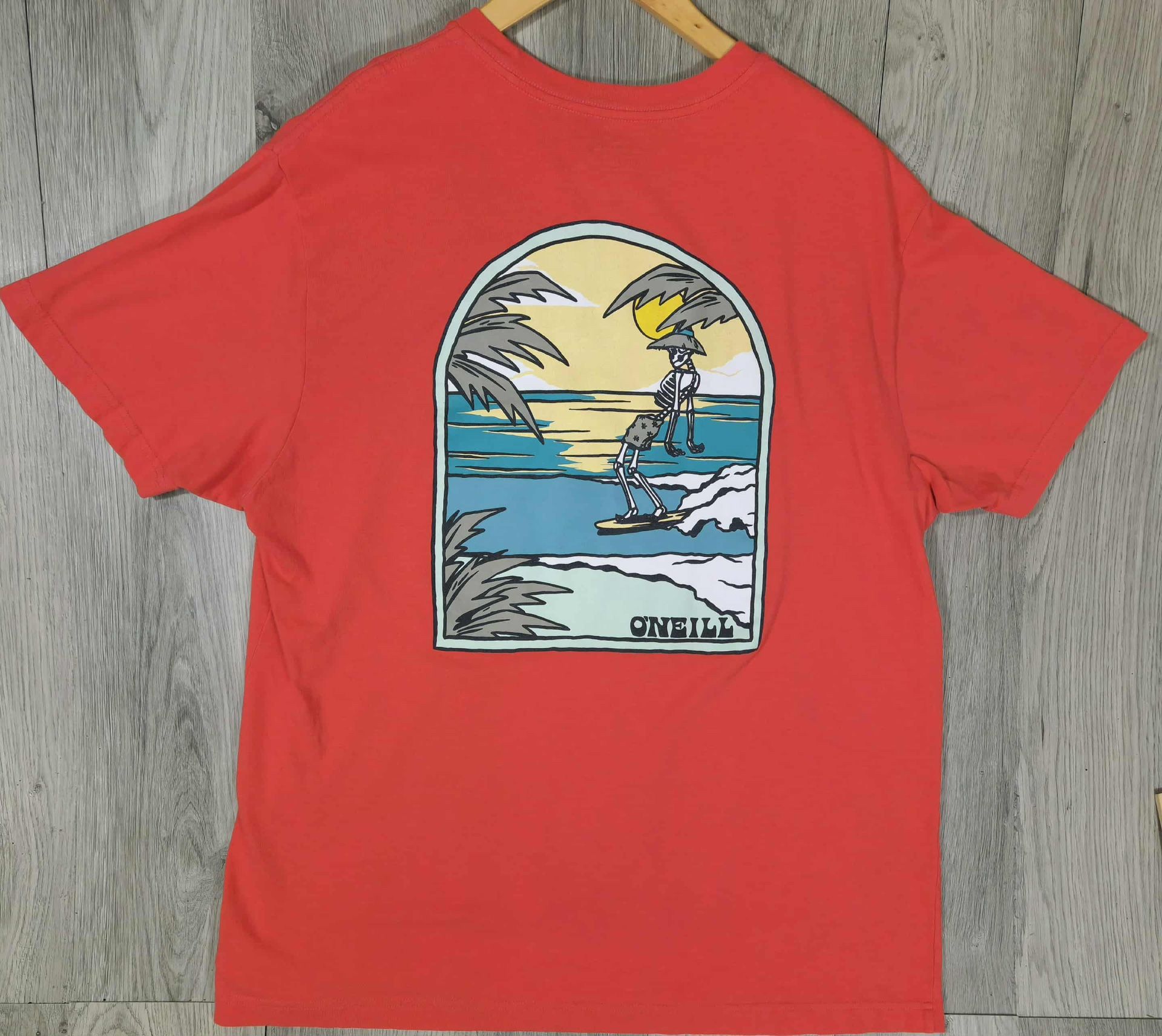 O’Neill Skeleton Surfer Sunset Graphic Tee Red XL #6