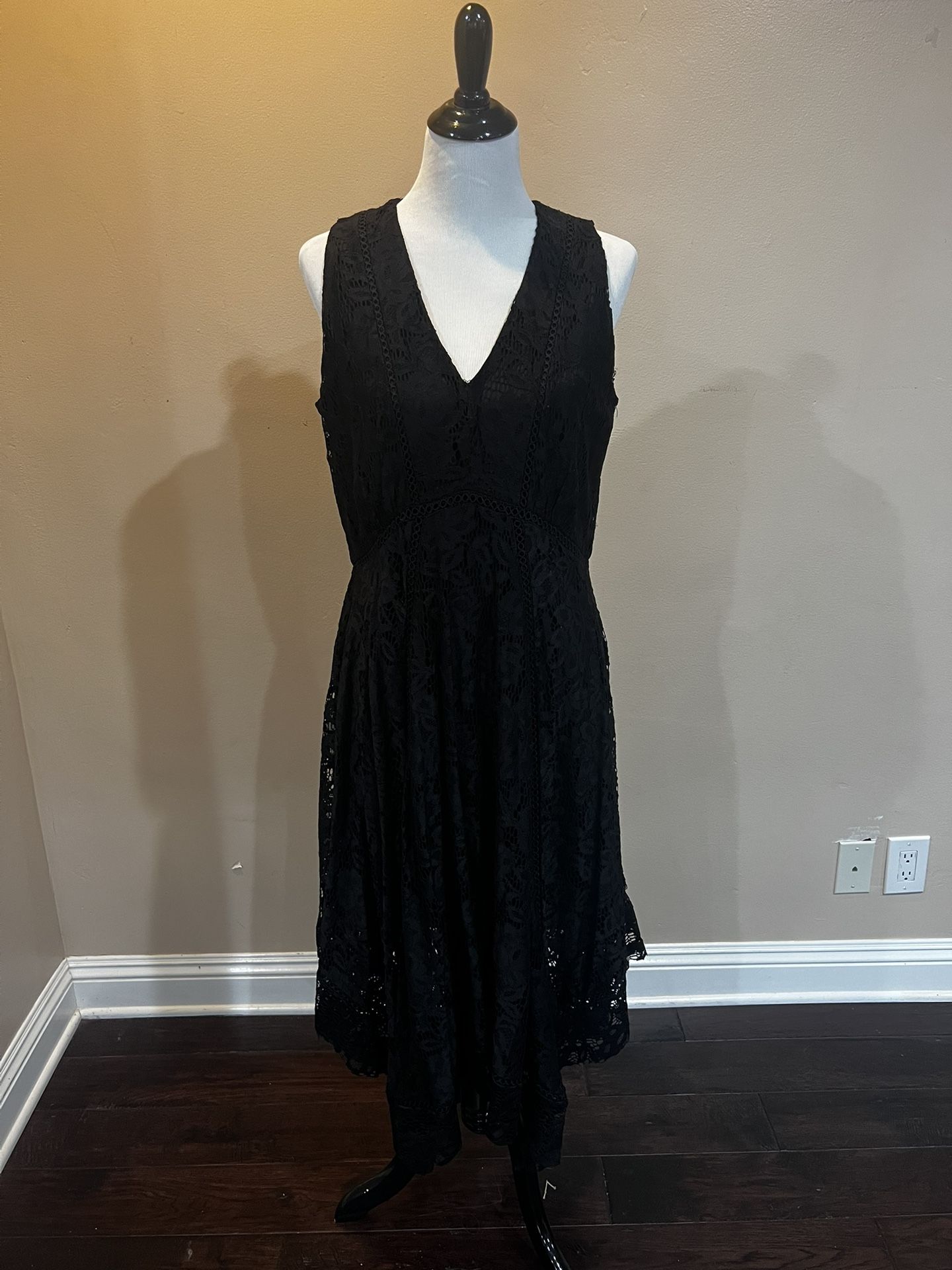 Taylor Black Lace Sleeveless Dress – Size 14 Elegant black lace dress by Taylor featuring a flattering V-neckline, sleeveless design, and flowy midi length with a soft high-low hem. Fully lined with beautiful lace detailing and a defined waist for a feminine silhouette. Perfect for weddings, cocktail parties, date nights, or special events. Size: 14 Brand: Taylor Color: Black Condition: Excellent preowned condition #lace #blackdress #cocktaildress #weddingguest #midi #taylor #size14