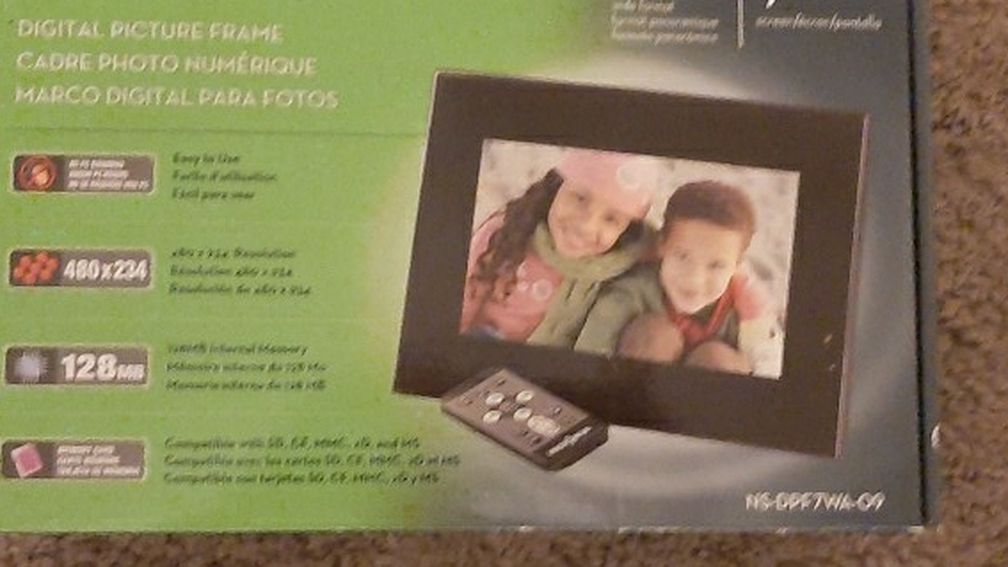 New never used - Insignia 7 inch digital picture frame. Load photos and it will display them.