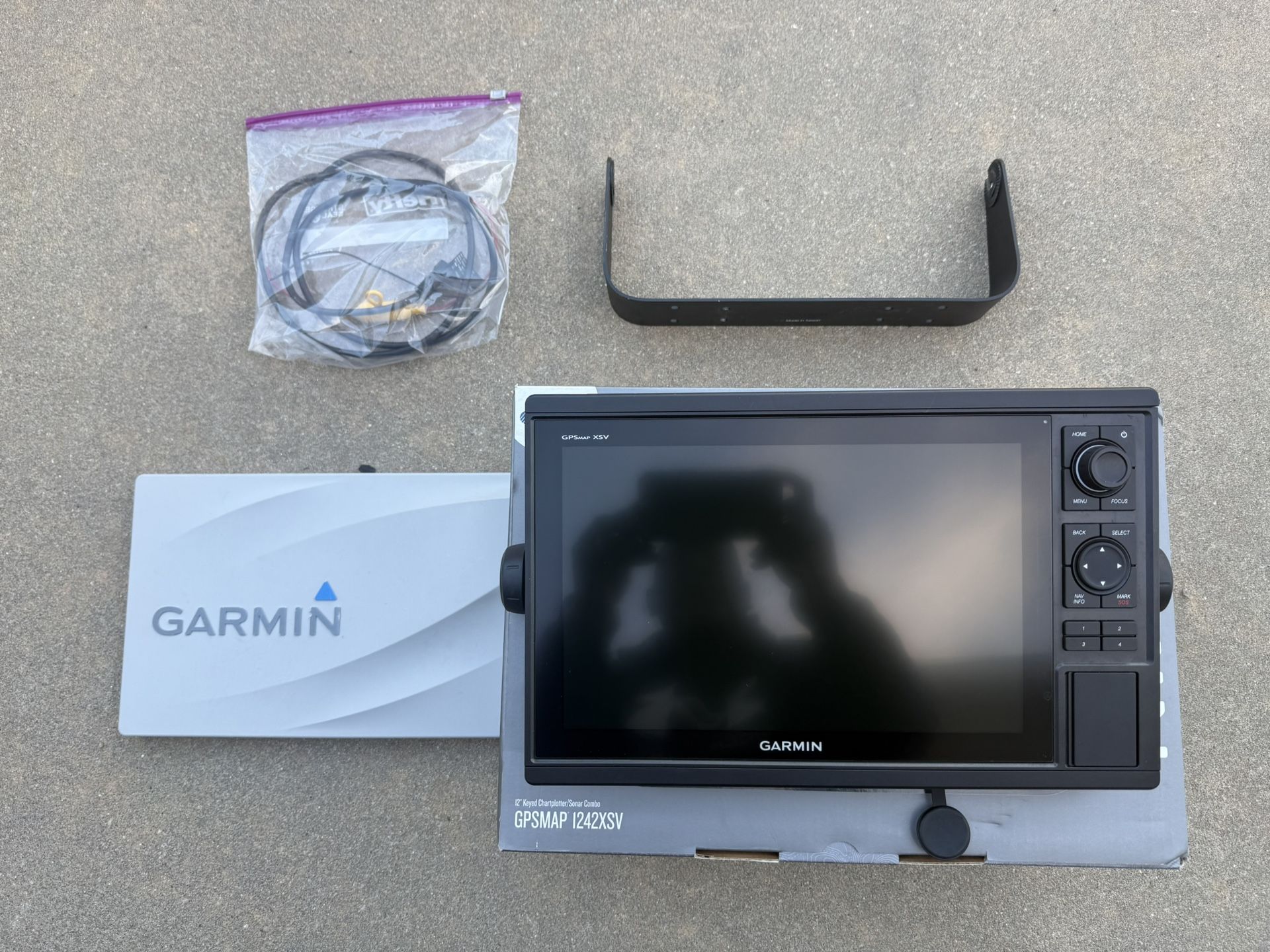GPSMAP® 1242xsv Combo GPS/Fishfinder GN+ You're a cruiser or sailor who prefers a keypad and wants built-in sonar and mapping. You need this all-in-one 12" chartplotter to guide the way. Experience an advanced all-in-one solution with our 12” GPSMAP® 1242xsv keyed combo. It features a large, bright screen coupled with a keypad interface and multifunction control knob. It comes with built-in support for Garmin CHIRP sonar along with CHIRP ClearVü™ and CHIRP SideVü™ scanning sonars. The combo also supports Panoptix™ and LiveScope™ sonar products, including the LiveScope™ Plus System and a wide range of other transducers (sold separately). Use built-in Wi-Fi® technology to pair with the free ActiveCaptain® smartphone app for access to the OneChart™ feature, smart notifications, Garmin Quickdraw™ Community data, and more. Garmin Marine Network support allows sharing of sonar, maps, user data, radar, IP cameras, and live sonar among multiple units. Plus, there’s NMEA 2000® and NMEA 0183 network connectivity support, including autopilots, digital switching, weather, media, VHF, AIS, and other sensors. These units also include integrated ANT® connectivity support for use with compatible quatix® smartwatches, the gWind™ Wireless 2 transducer, GNX™ Wind marine instrument, and wireless remote controls (sold separately). Preloaded Garmin Navionics+™ coastal charts and inland mapping feature Auto Guidance+™ technology (Auto Guidance+ is for planning purposes only and does not replace safe navigation operations.) Plus, there’s support for optional Garmin Navionics Vision+™ premium map content. The combo also includes Quickdraw Contours software and the Quickdraw Community on our Garmin Connect™ online network. See RPMs, fuel flow, temperature, trim, and more for up to four of your compatible Mercury® engines by using the SmartCraft® Connect gateway. Features: Large, bright 12” screen with keypad interface and multifunction control knob Built-in support for Garmin CHIRP sonar and CHIRP ClearVü™ and CHIRP SideVü™ scanning sonars (transducers sold separately) Supports Panoptix™ and LiveScope™ sonar products (transducers sold separately) Preloaded Garmin Navionics+™ coastal charts and inland mapping feature Auto Guidance+™ technology (Auto Guidance+ is for planning purposes only and does not replace safe navigation operations); plus, there’s support for optional Garmin Navionics Vision+™ premium map content. Built-in Wi-Fi® technology capabilities for the ActiveCaptain® app See RPMs, fuel flow, temperature, trim and more for up to four of your compatible Mercury® engines by using the SmartCraft® Connect gateway Supports the Garmin Marine Network; allows sharing of sonar, radar, maps, user data, and NMEA 2000® and NMEA 0183 network connectivity support, including autopilots, digital switching, weather, media, VHF, AIS, and other sensors Includes Quickdraw Contours map drawing software Built-in Garmin SailAssist™ features include laylines, race features, set and drift, wind data, and more Integrated ANT® connectivity support for use with compatible quatix® smartwatches, the gWind™ Wireless 2 transducer, GNX™ Wind marine instrument and remote controls (sold separately)
