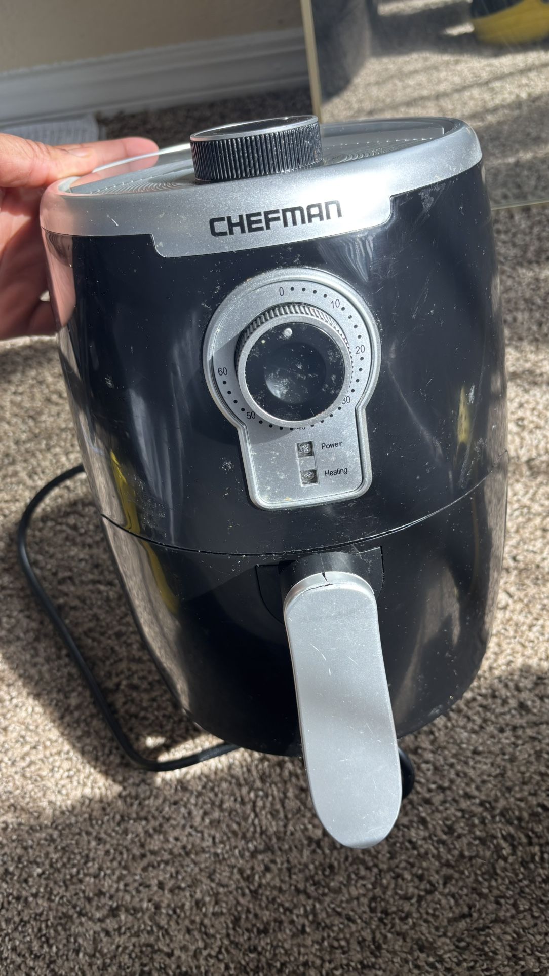 Compact and easy-to-use Chefman 3.6-quart air fryer with manual temperature and timer controls. Perfect for quick meals, crispy fries, chicken wings, vegetables, and more with little to no oil. Works great and heats up fast. Ideal size for 1–2 people and doesn’t take much counter space. Clean and fully functional. Selling because I no longer use it!