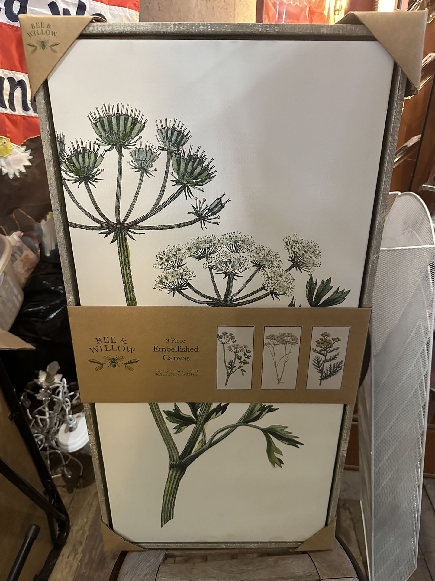 Bee and willow painting canvas Wall decor green Size 15”x 30 tall 3 pcs New in pack
