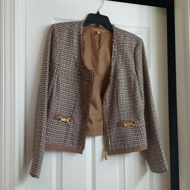 Ask for Jackie. No trades. If local/No PayPal or Venmo. Cash only. Thank you. From Macys. In excellent condition. New condition. This jacket is so great to wear casually with denim leggings or white Jean's. Dress it up to with slacks or skirts. I paid $99 for it. Pair with your favorite blouse. I have the pants in Black and White (sold seperately) on my page.