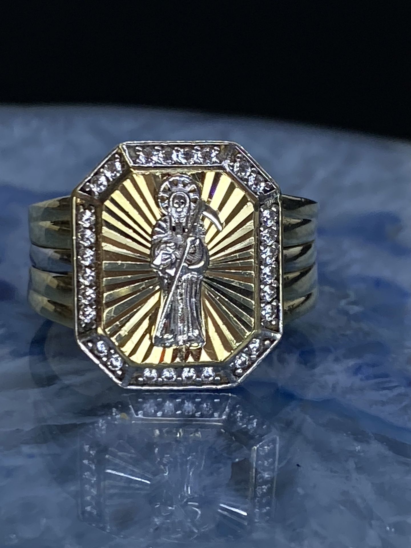 $1300 Two Tone Yellow And White Gold W Zirconia Santa Muerte Statement Ring