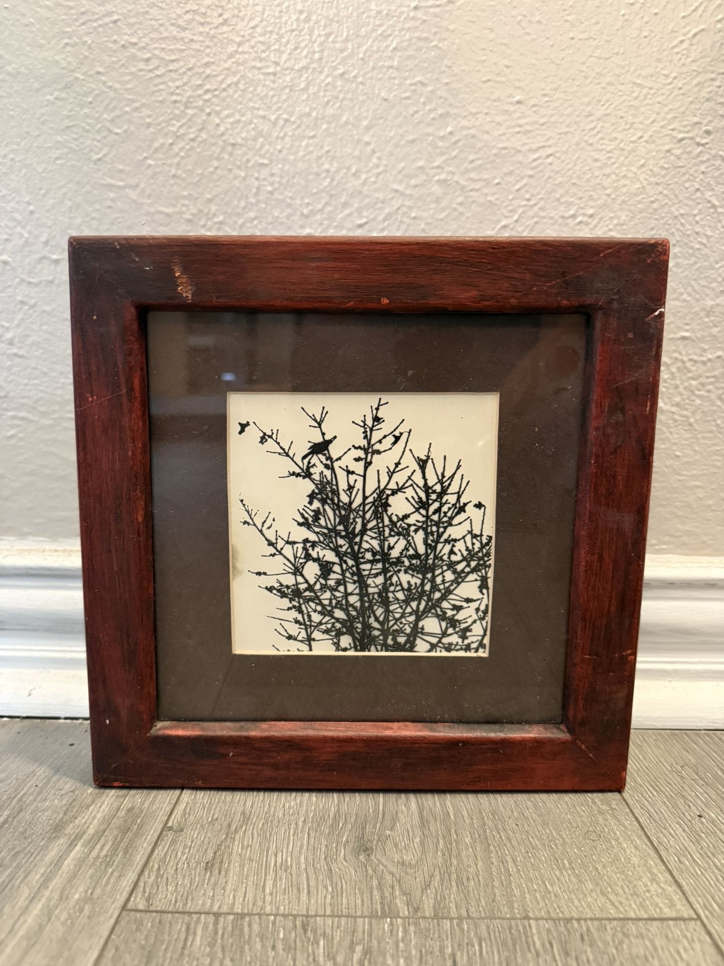 Howdy! I’m looking to sell this lovely rustic framed black-and-white nature print titled “Winter Perch.” The artwork features a peaceful scene of bare branches with perched birds, evoking that quiet stillness of winter. The deep reddish-brown wooden frame adds a warm, vintage vibe to the piece, and while it shows some wear, it adds to the charm and character of the artwork. This item is available for pick up at 75206, shipping (if applicable), or possibly meeting in the middle – whichever is convenient. I’m also happy to deliver to you if you can assist with covering for gas. I’m trying to clear some space and do a bit of spring cleaning, so feel free to check out my other postings.