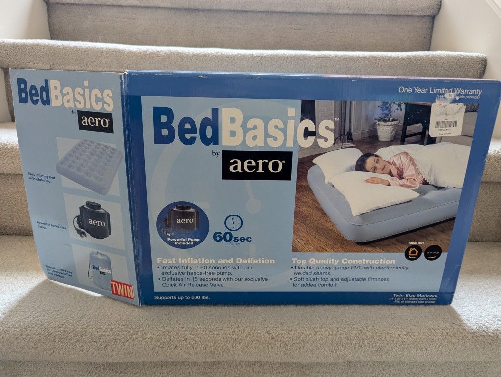 AERO twin size air mattress, seldom used, comes with hands-free pump and carry bag. The price is firm.