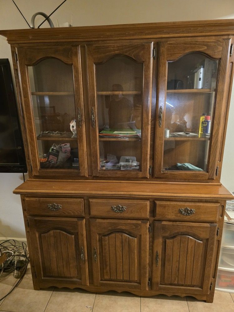 China Cabinet: 72"x55" Other furniture items available. Everything in good condition. Normal wear. China cabinet has a few minor scratches that can be polished out. Dinner table and chairs available.