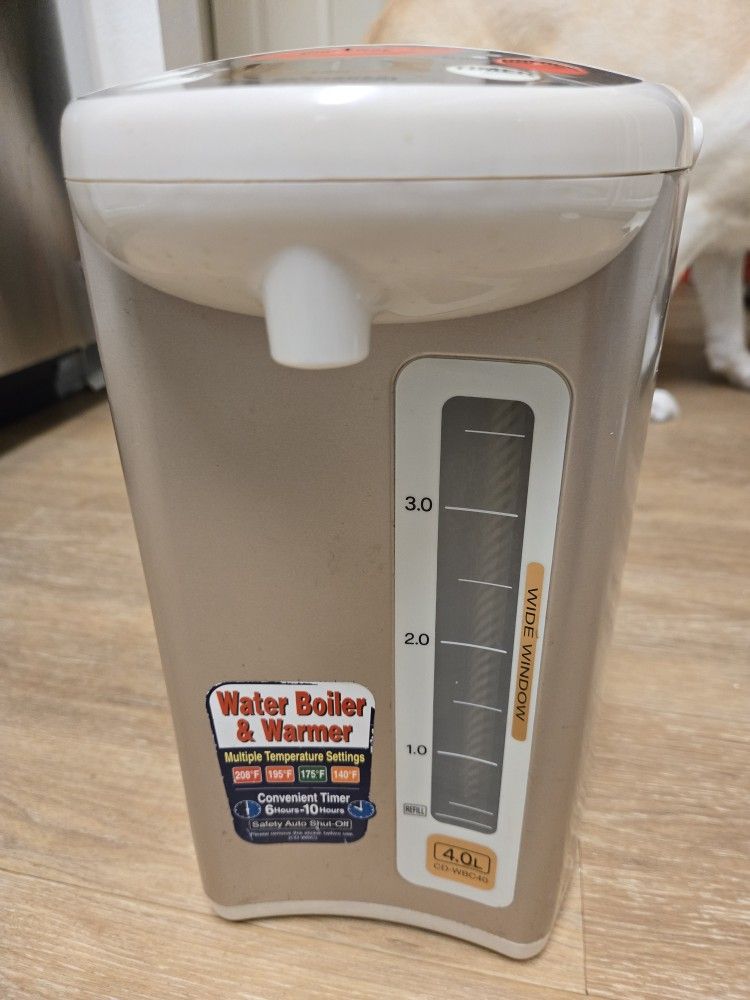 Selling a used 4L Zojirushi water boiler. If you know the brand, you know these last forever! Condition: Fully functional, heats and dispenses perfectly. Note: Has a cosmetic dent on the side (see photos), but doesn't affect performance. Includes: Power cord. Pick-up only, giving away for free