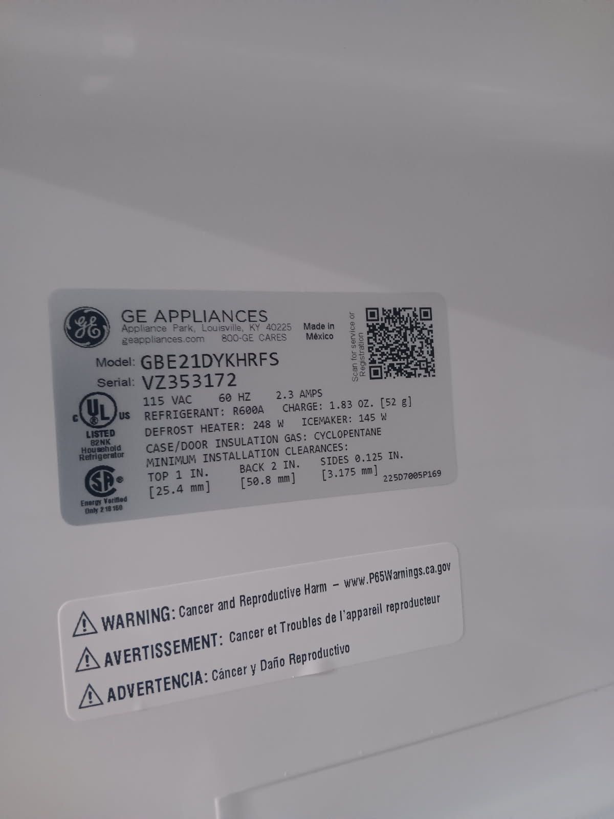 20.9-Cu Ft Standard Depth 30” Wide Bottom freezer