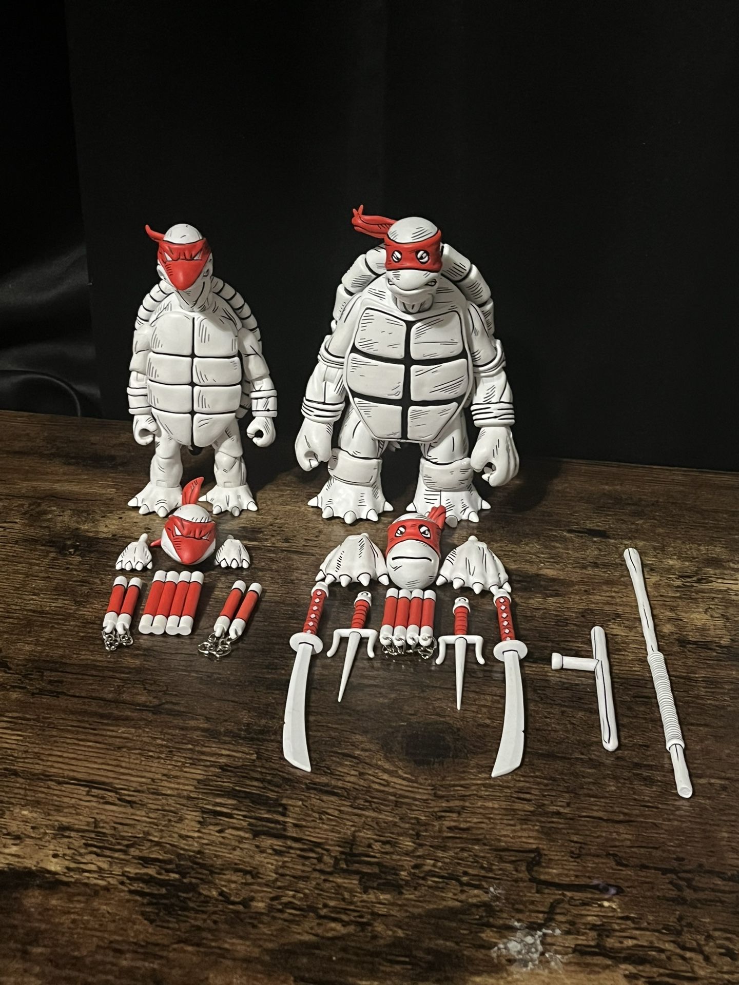 * Collectible Action Figures: NECA's Black and White First Turtles 7" action figure 2-pack features monochrome Teenage Mutant Ninja Turtles. * Highly Detailed: Sculpted with intricate details and articulation for dynamic posing. * Nostalgic Design: Figures capture the classic comic book style of the original TMNT characters. * Sturdy Construction: Made from high-quality materials for long-lasting play or display. * Exclusive Set: Limited edition collectible suitable for TMNT fans and action figure enthusiasts. Ignore tags: Tmnt Marvel legends Mezco Dc Multiverse Mcfarlane Lego Anime Collectible Action figures Star Wars Black Series Vídeo Game Rare Limited Edition Exclusive Neca Hasbro Mattel Bandai Funko Pop Spider-Man Batman Cheap Mario Nintendo