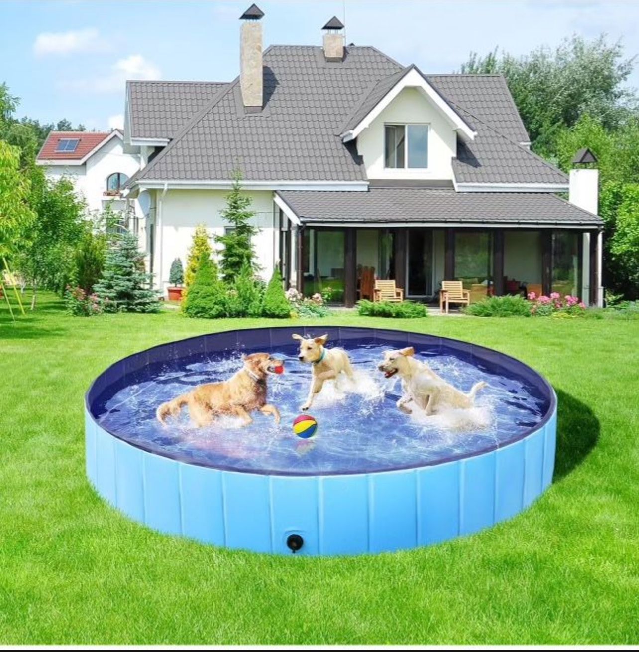 NEW IN THE BOX Foldable Dog Pools 79 x 12 Inches (4XL size) Collapsible Hard Plastic Pets Swimming Pool Portable Puppy Bath Tub Cat Shower Pet Wading Pool for Outdoor/Indoor w/Pet Brush&Repair Patches. C31 - 592775