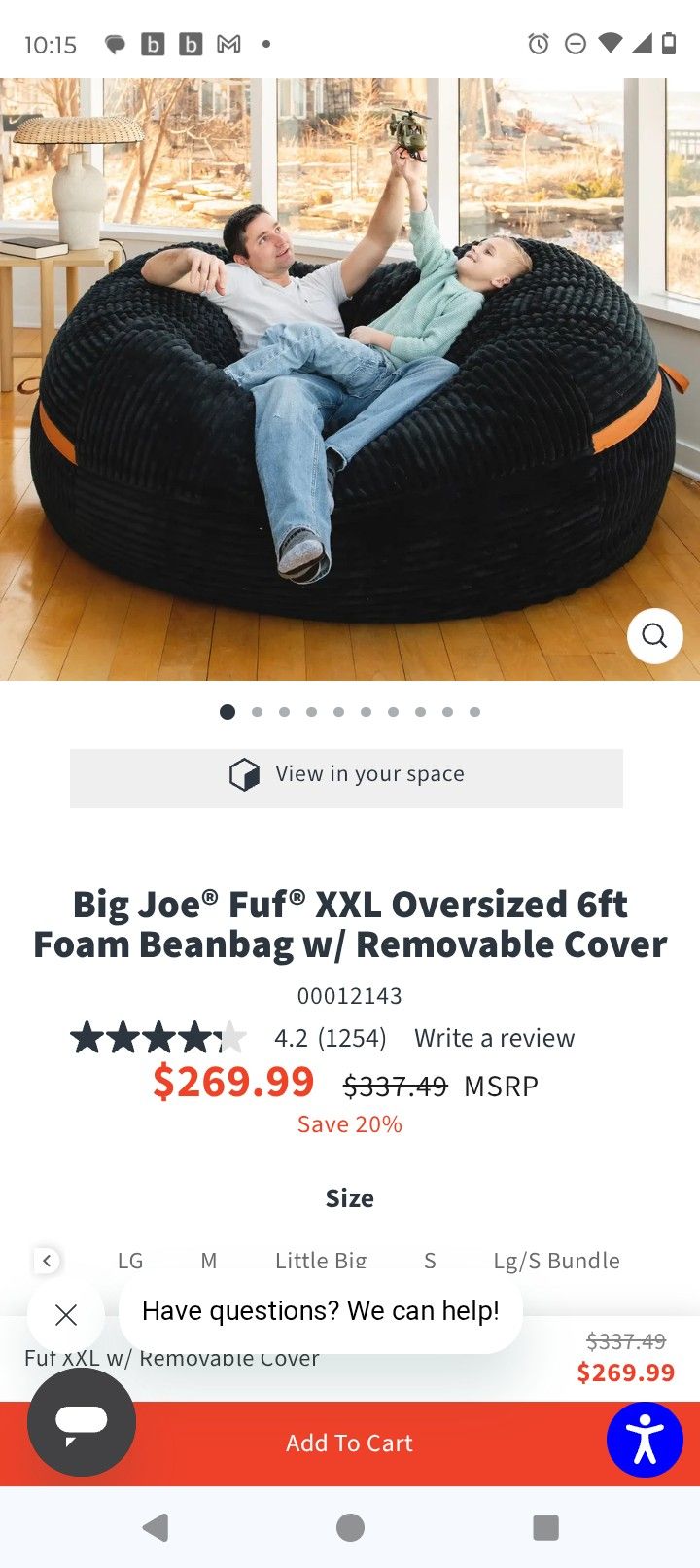 7 Ft Big Joe Bean Bag Chair Black