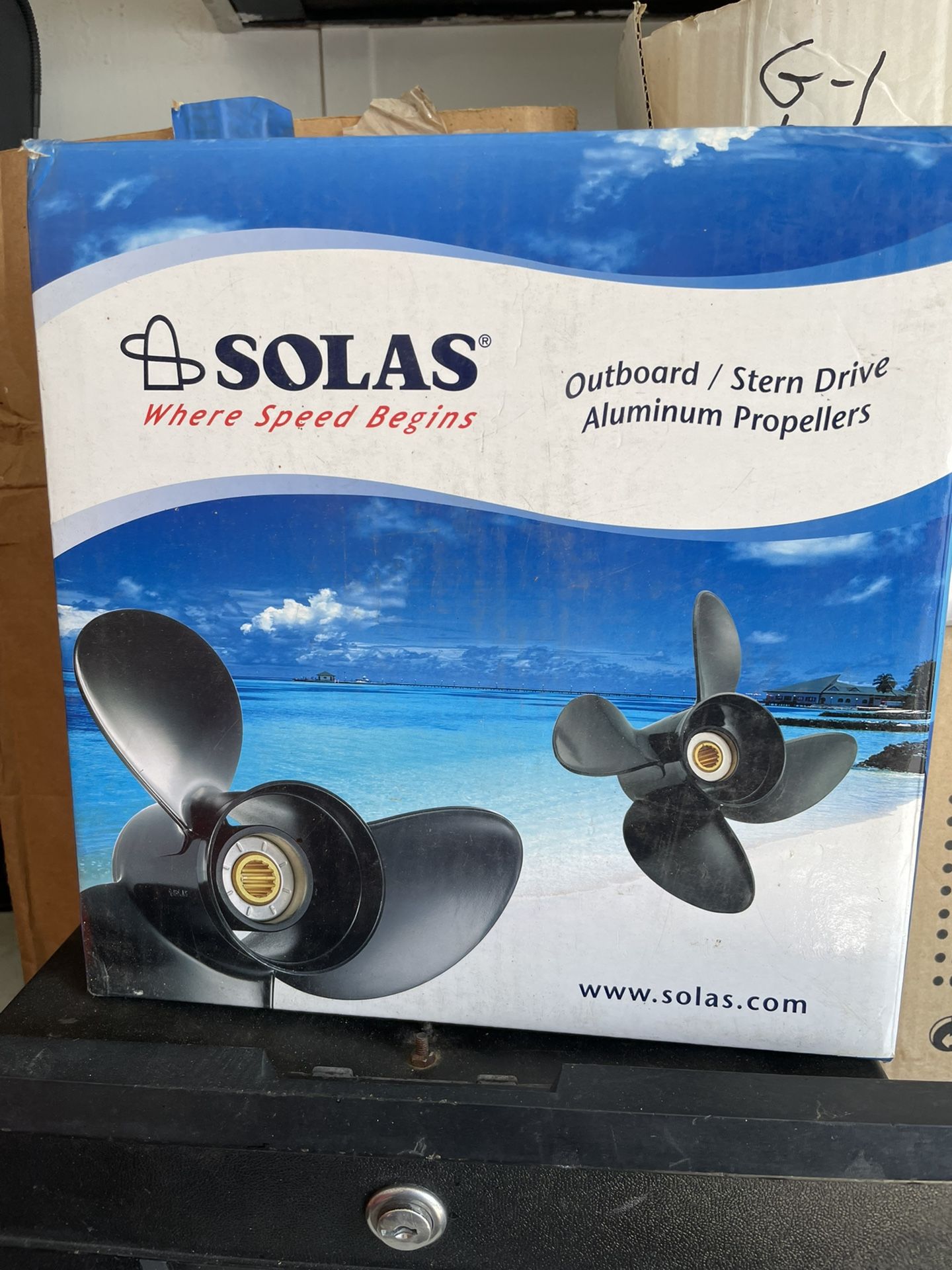 Solas AMITA 3 prop 1111-093-09 MA3X9.25X9RB Aluminum 3 blade 9.25 diameter pitch 9 Engine Mercury Rotation R 2 available New in box (Location back wall of trailer)