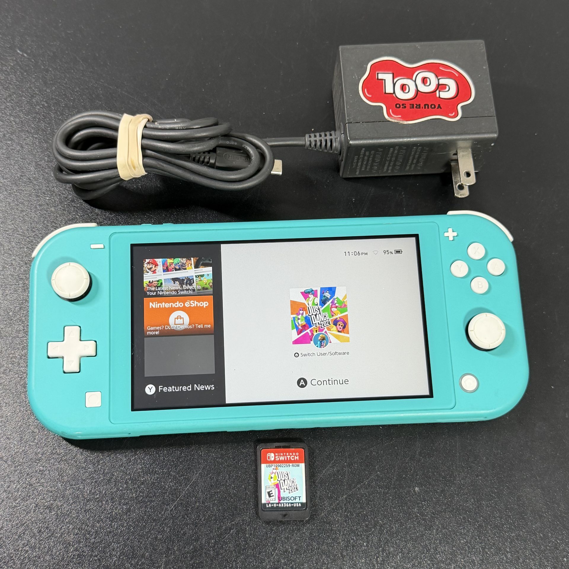 Nintendo Switch Lite Turquoise HDH-001 Handheld Console With Charger And Game