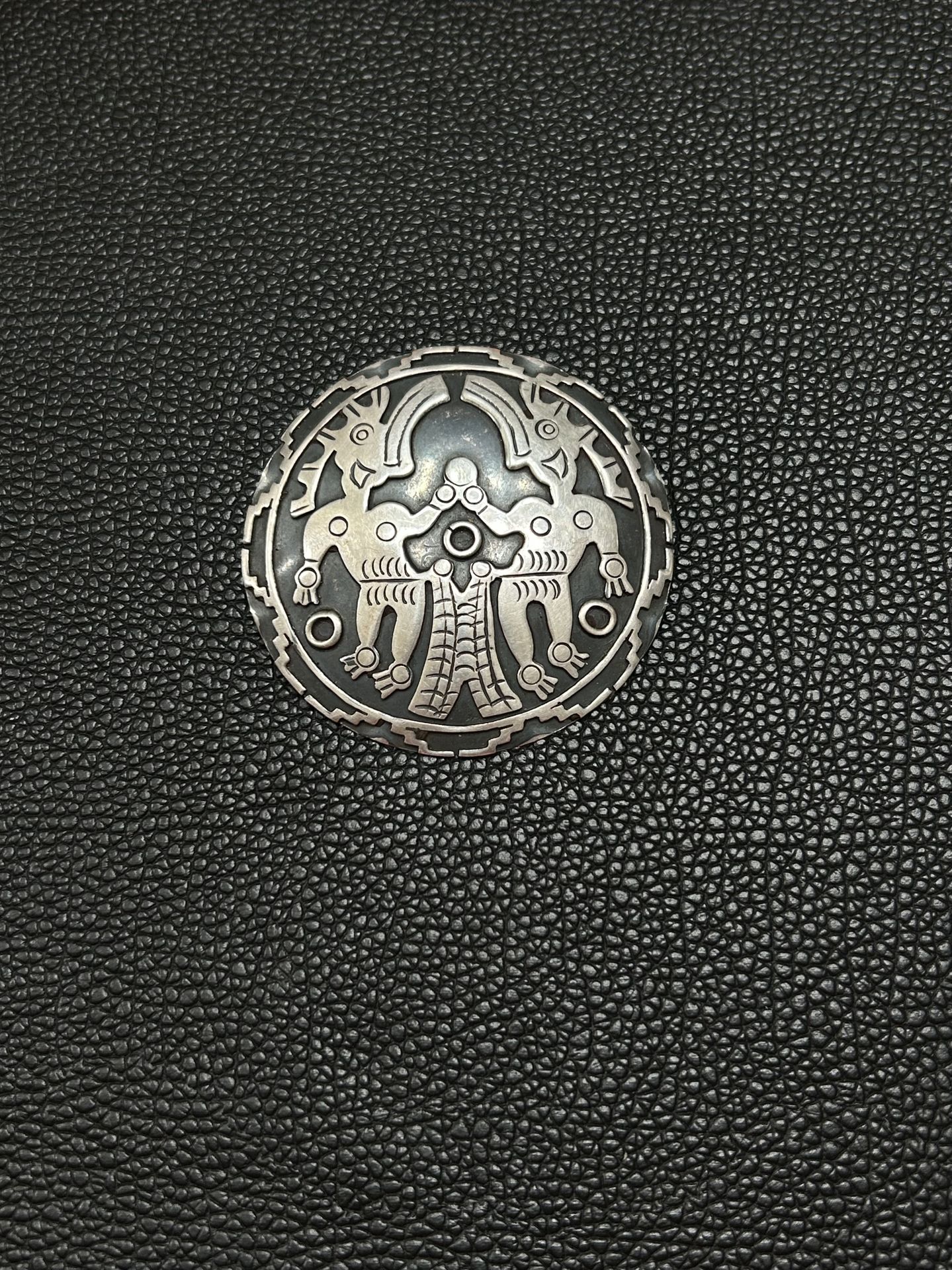 vintage large Mexican Taxco sterling silver Mayan Aztec pendant necklace sign M.G 21.5 gm
