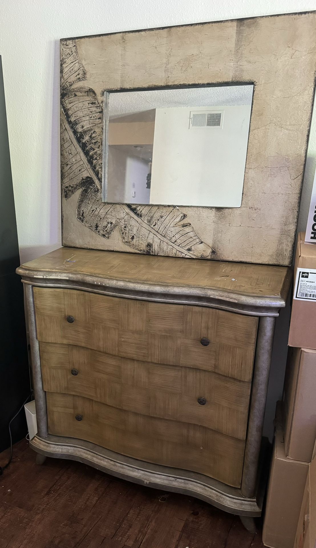 Mirror and dresser not attached . Bronze dresser contains 3 large drawers is great for any room, closet, living room or dinning room.
