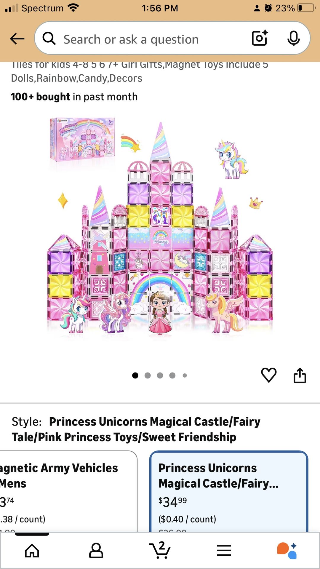 Diamond Magnetic Tiles Unicorns Princess Castle with Magnetic Art Decor Kit, Unicorn Toys for Girl 3 4-6-8, Magnet Tiles for kids 4-8 5 6 7+ Girl Gifts,Magnet Toys Include 5 Dolls,Rainbow,Candy,Decors
