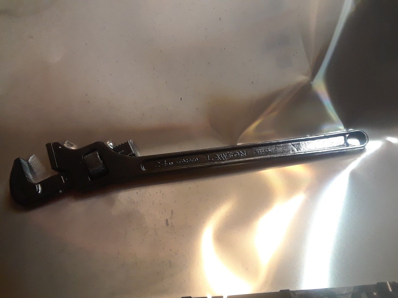 Vintage restored 24 inch angle pipe wrench with a 8inch opening to get any job done you can come across this a heavy duty asset that will make you money and become a part of the family and for only$$$ 30 bucks OBO I mean wow PAYPAL and CASH Accepted