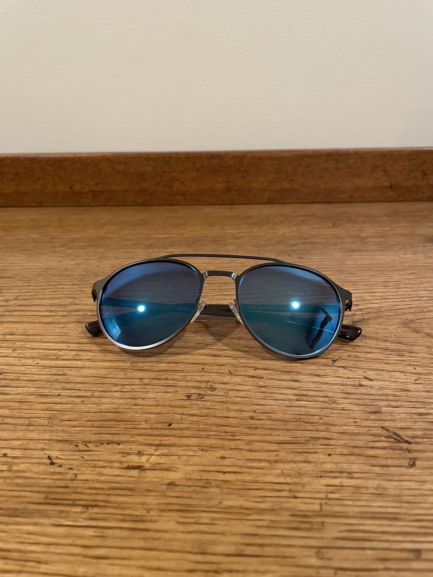 Marc Hunter sunglasses in great condition. Worn once and basically like new. Clean lenses with only very minor signs of use that are not noticeable. Stylish frame with blue tinted lenses. Includes a protective case & lens cloth (not original).