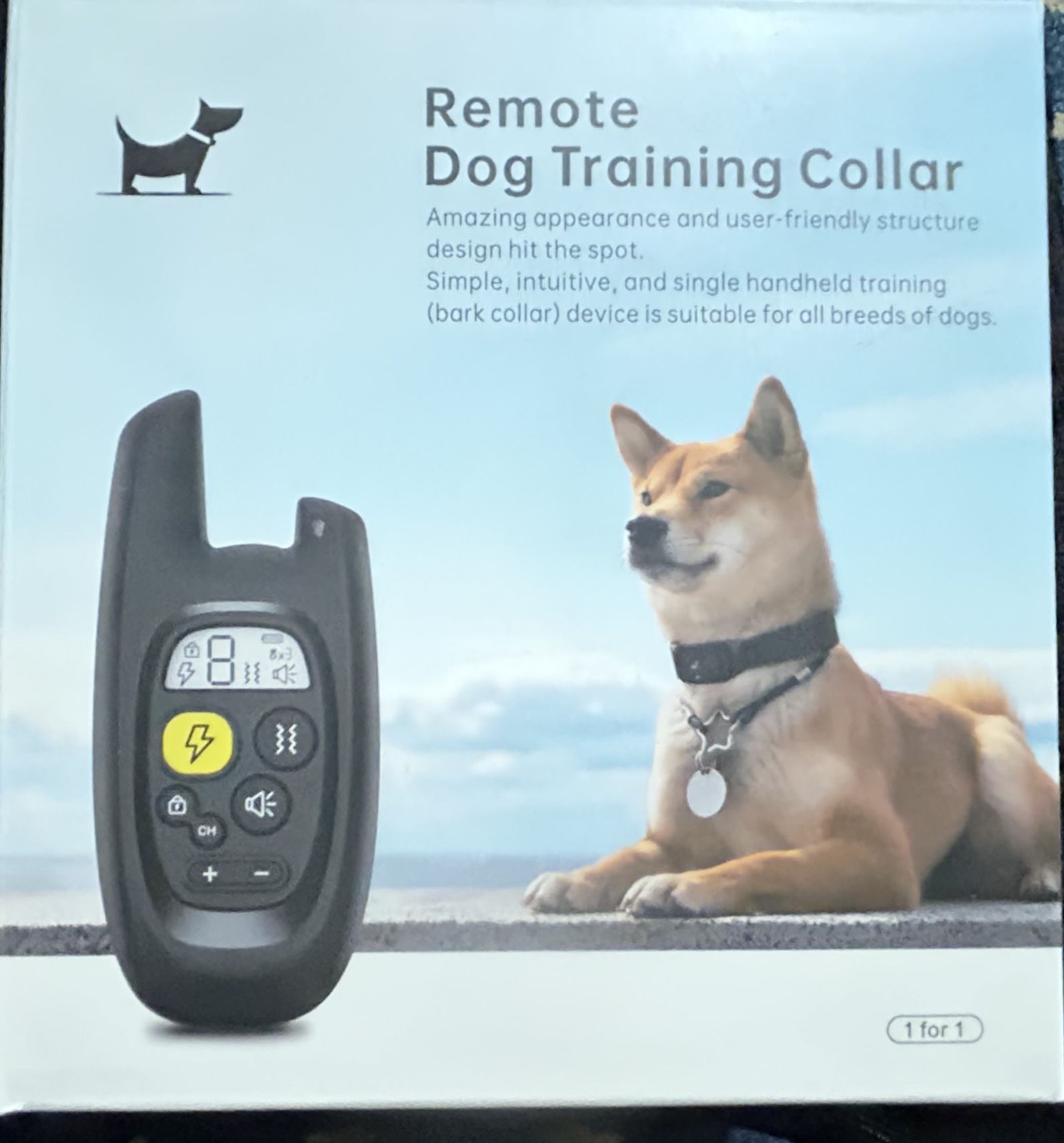 “Brand new remote dog training collar—still sealed in box, for one dog! Includes rechargeable remote with beep, vibration, and safe static modes. Waterproof and long-range. Great for obedience training. Cash only, local pickup.”