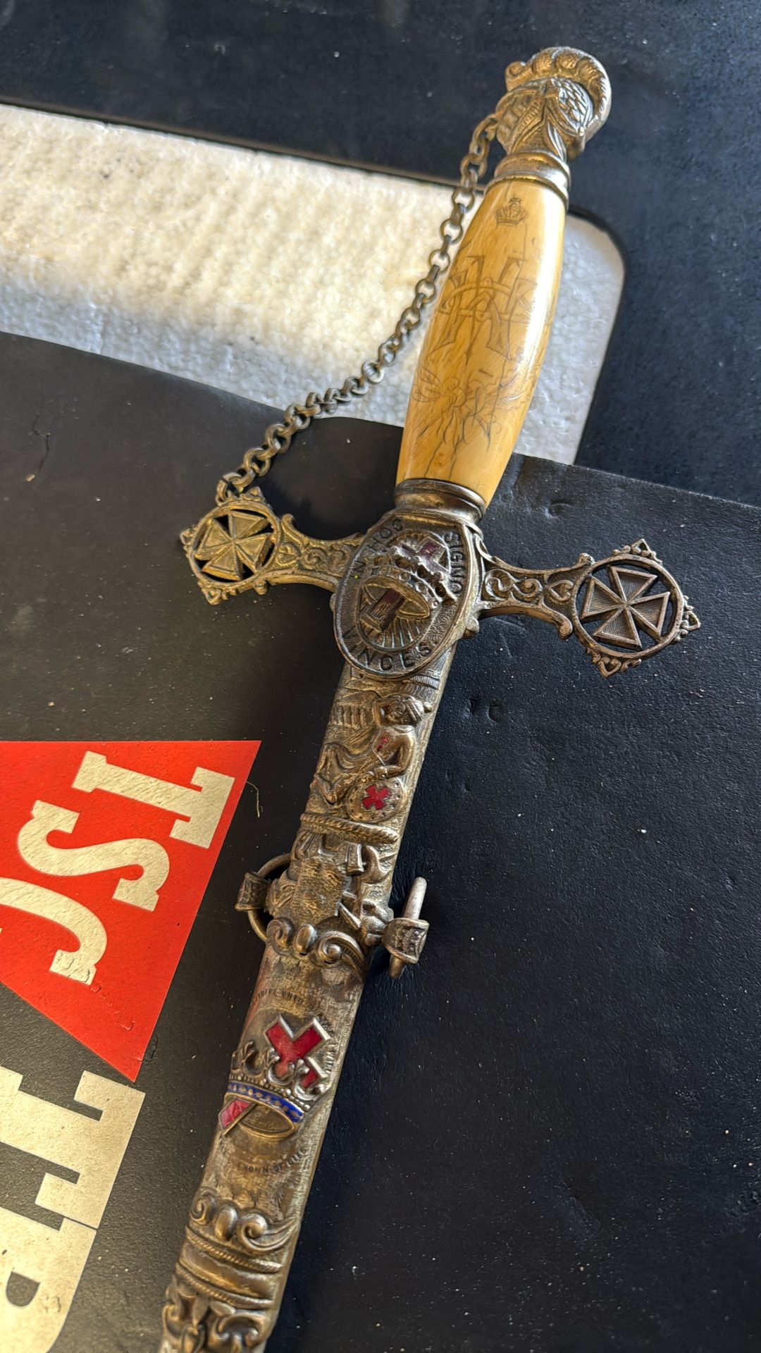 This is a real knights of Templar sword. The etching on the blade is immaculate and the sheath that comes in is immaculate. This sword belonged to a higher up in the knights of Templar.