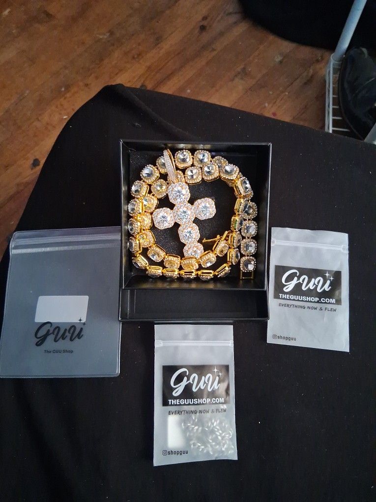 Nice Amazing gold Diamond necklace and gold cross for sale retail price $250 asking $180 all sales or Final