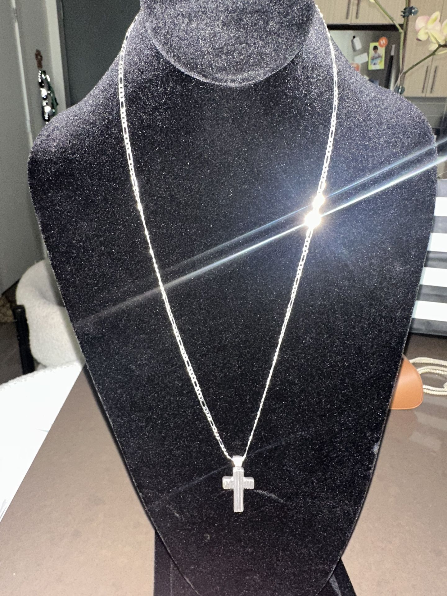 30in 2mm Figaro with Cross 14k white gold over 925 rhodium finish Cross 30$ Chain 40$ Bundle 55$