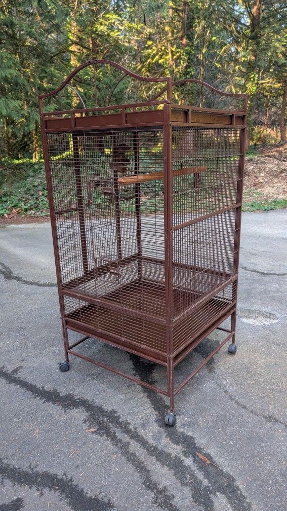 Available bird cages: Brown: 65"x30"x30" $100 Green: 56"x30"x22" $125 Silver: 58"x28"x24". $75