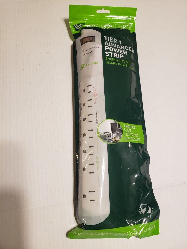 Greenlite Tier 1 Advanced 7 Outlet Surge Protecting Power Strip. NEW!! Great Energy Saver, manufacture sealed. Perfect for all your new Electronics for Christmas. Shipped with USPS Ground